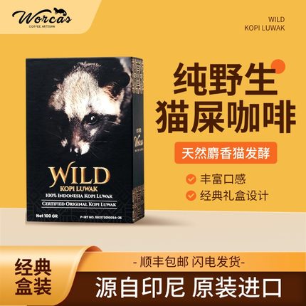 印尼进口WORCAS野生猫屎咖啡豆粉盒装送礼精品正品手冲醇厚顺滑