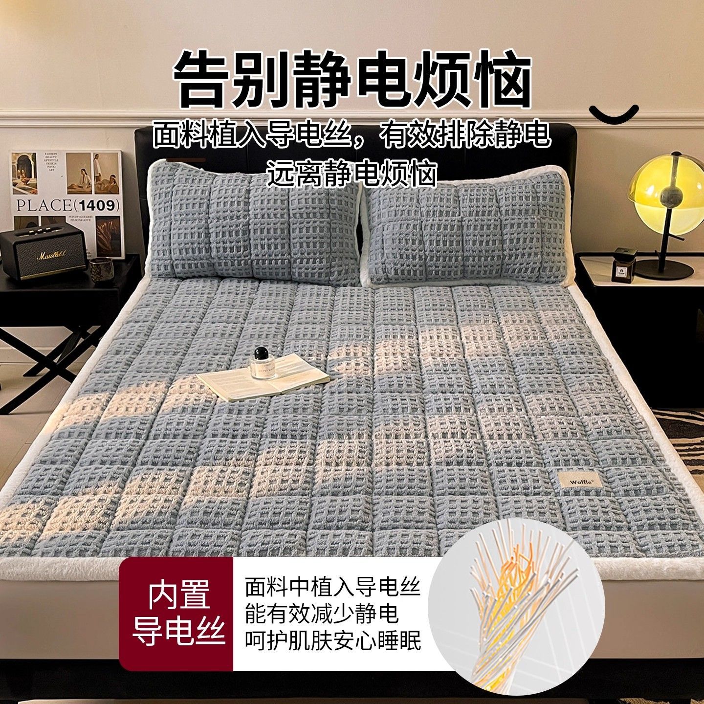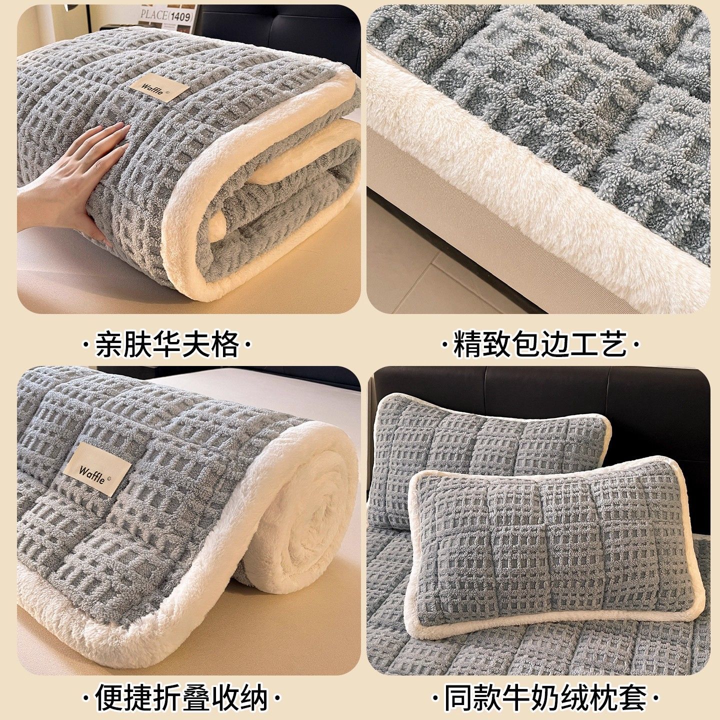 华夫格加厚牛奶绒床褥加绒床单宿舍榻榻米床垫秋冬床褥子铺床褥垫
