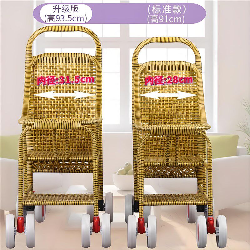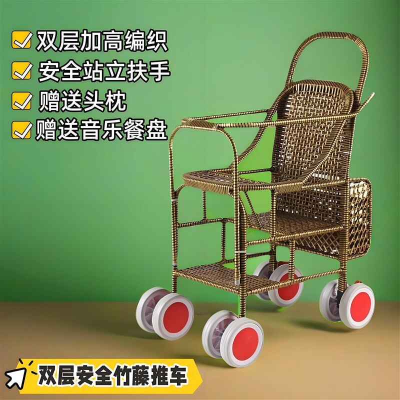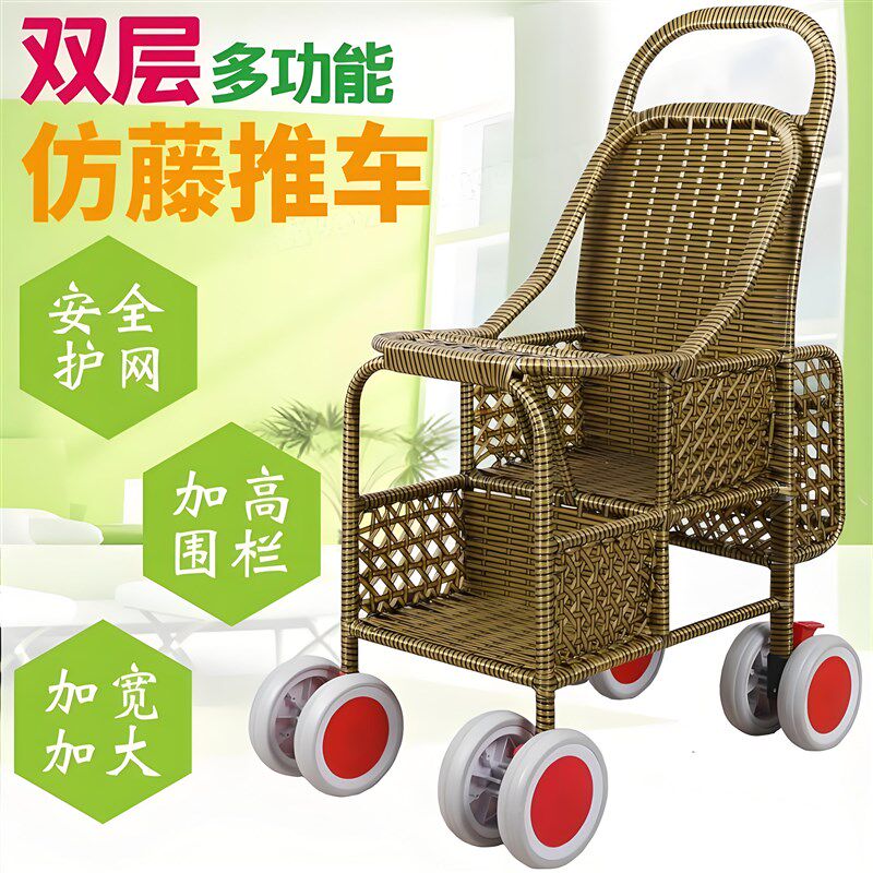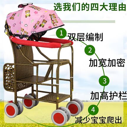 藤编婴儿推车夏季竹藤推车轻便宝宝儿童藤椅加高护栏小儿小孩藤车