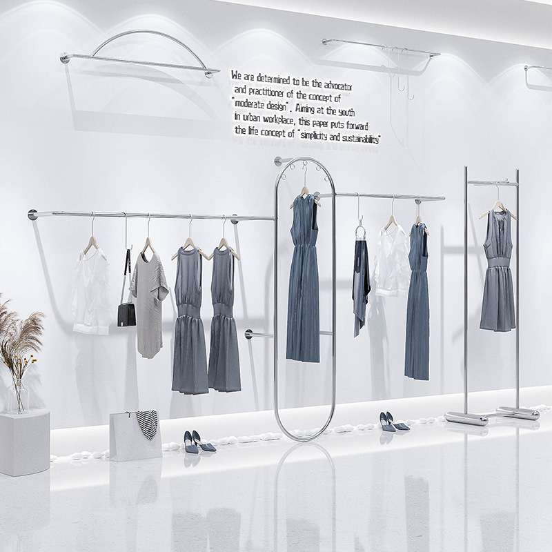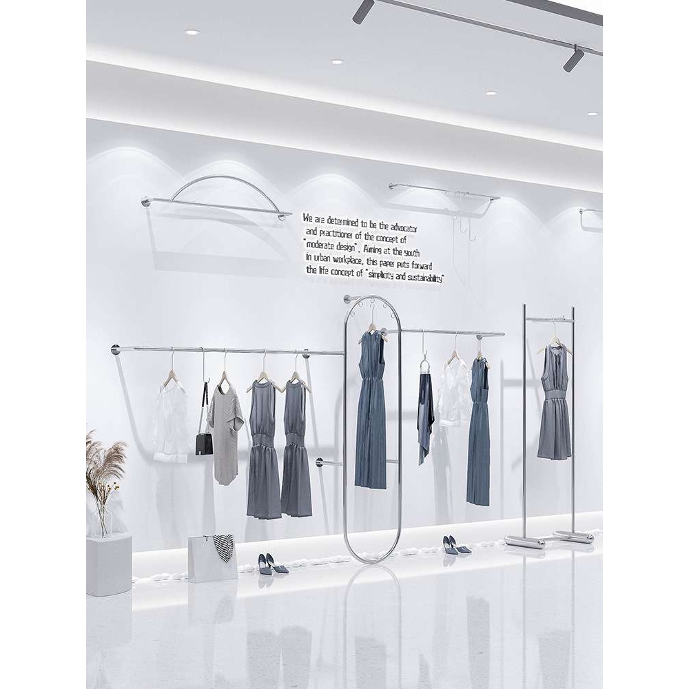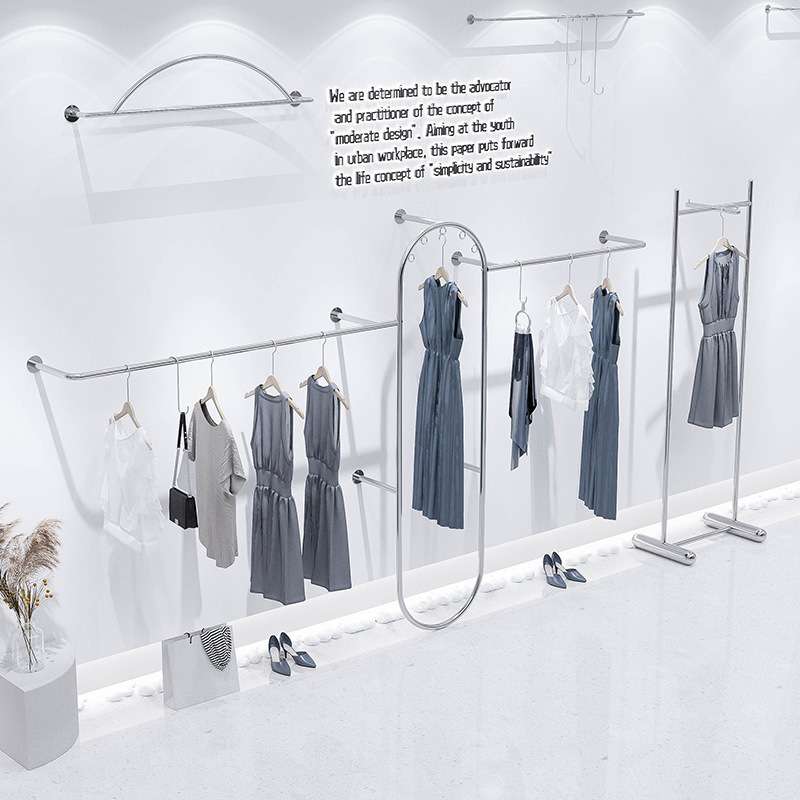 服装店展示架上墙陈列架女装店货架子侧挂落地式不锈钢挂衣杆网红