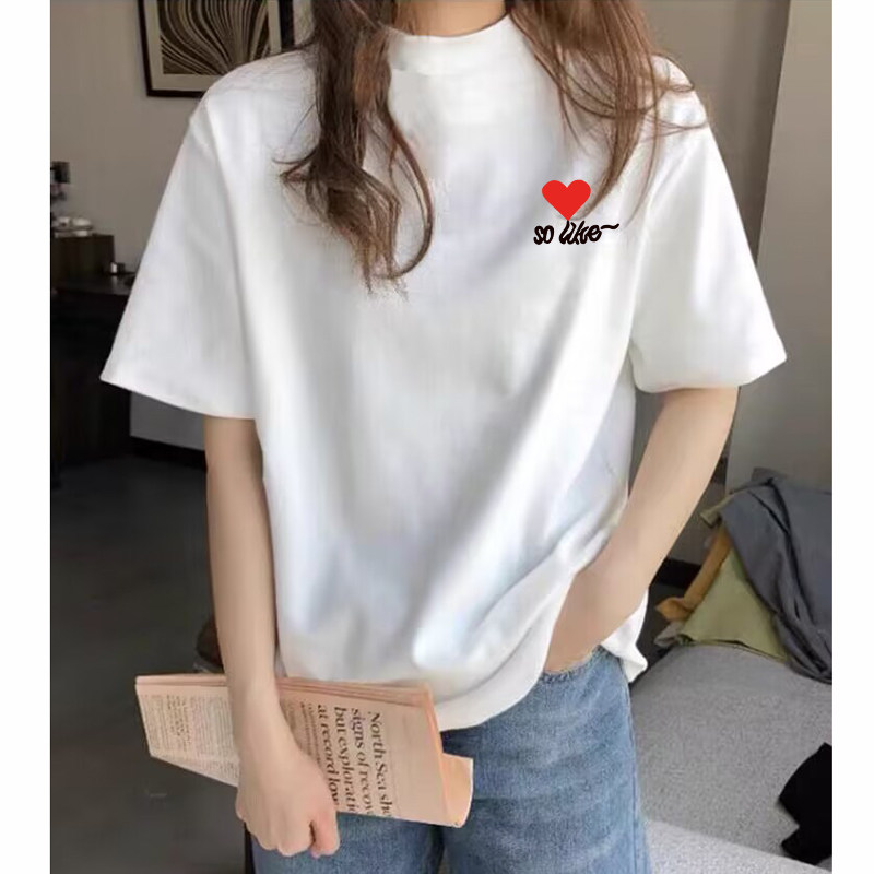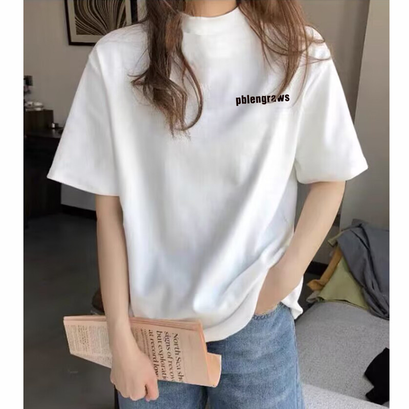 欧洲站小半高领短袖纯棉t恤女夏季大码宽松半袖纯棉体恤打底上衣