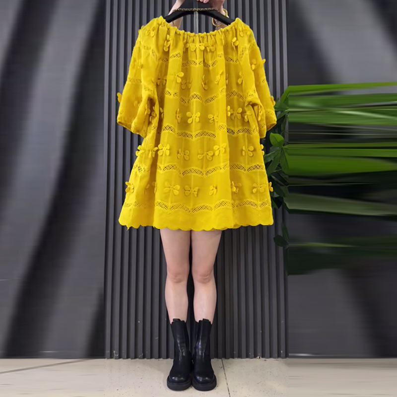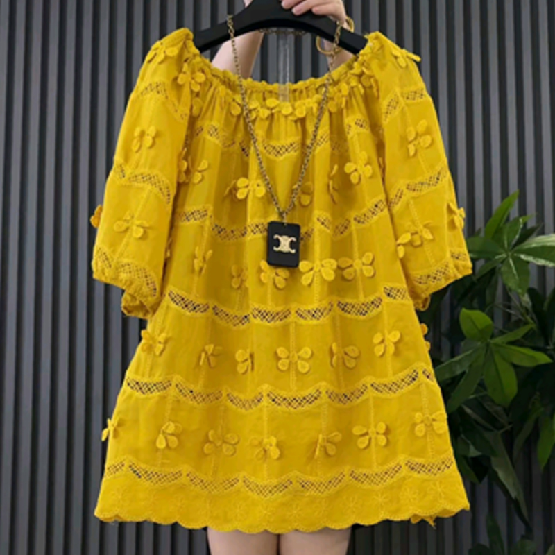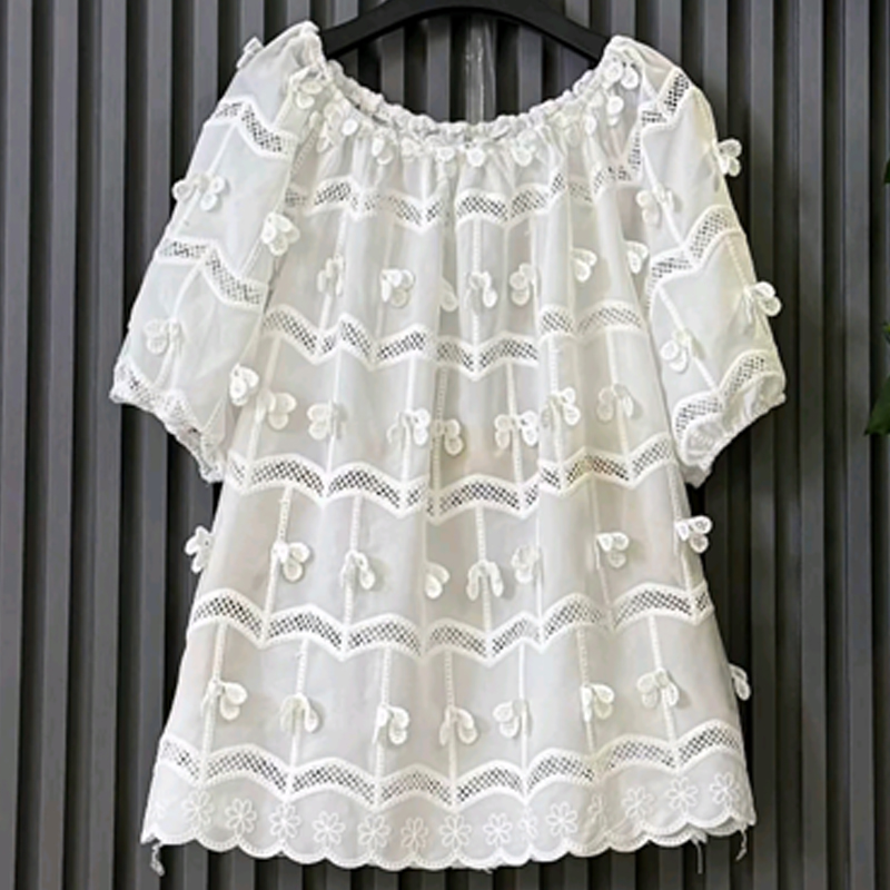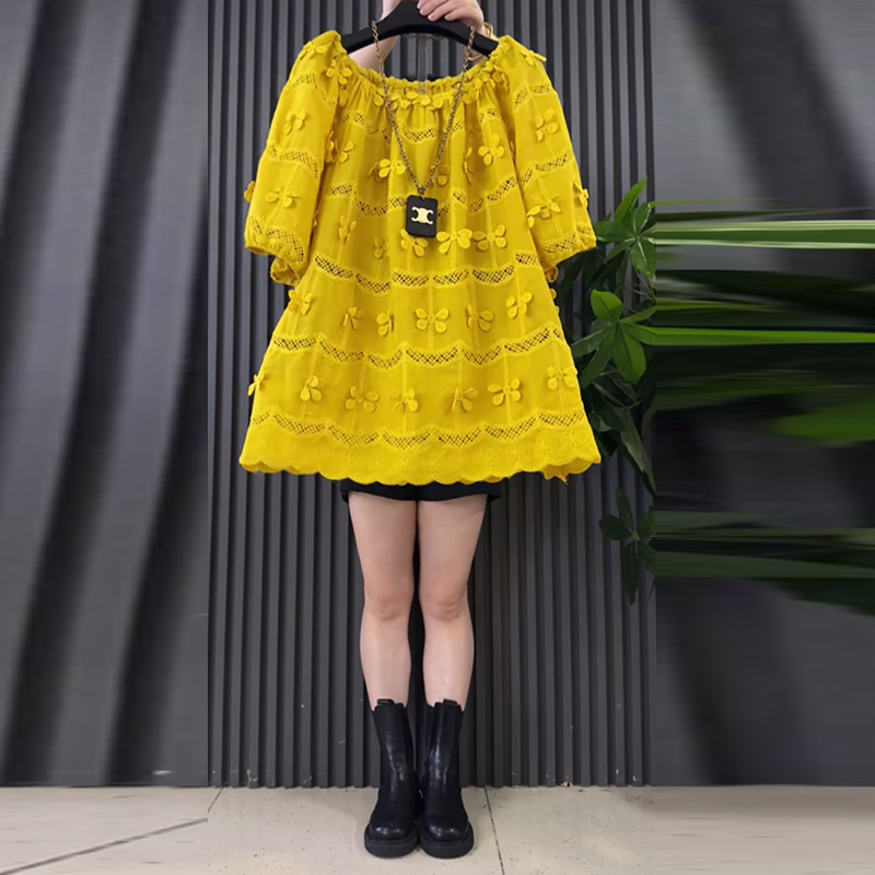 大码女装可一字肩短袖花朵上衣