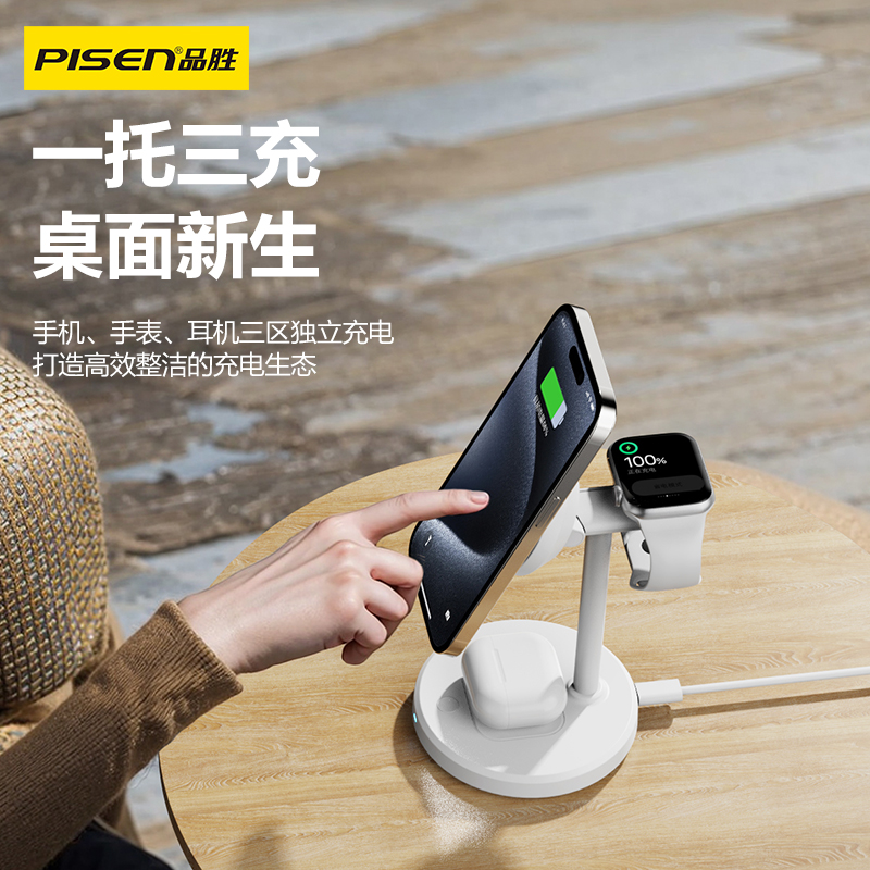 品胜三合一磁吸无线充电器支架MagSafe适用苹果17华为安卓iPhone16手机支架手表iWatchS10充电底座airpod耳机