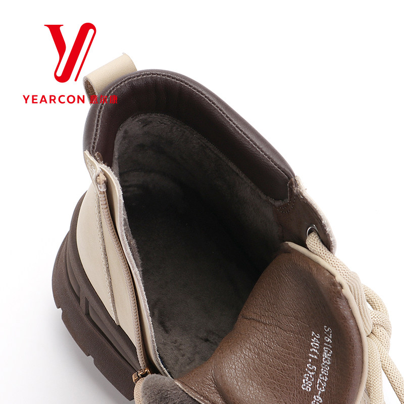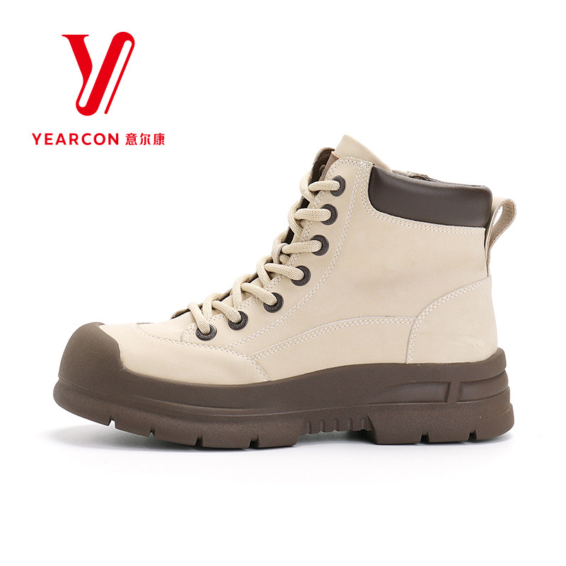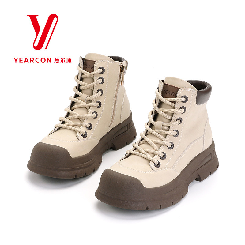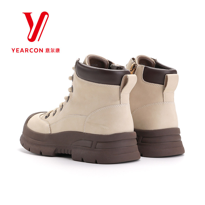 意尔康女靴2025新款秋冬季真皮马丁靴女厚底短靴加绒户外工装靴子