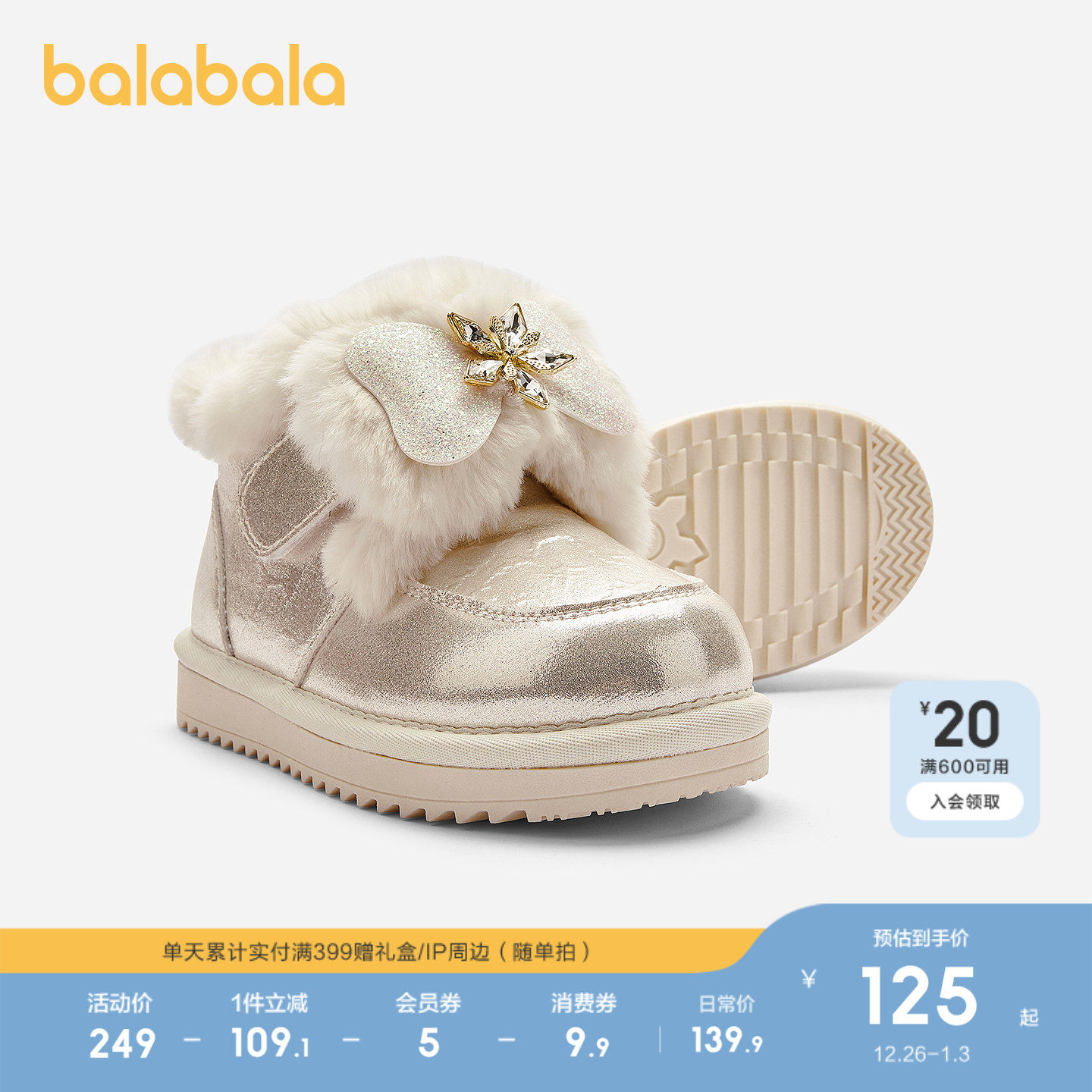 巴拉巴拉童鞋女童雪地靴加绒保暖棉靴子冬季短靴儿童防滑鞋子甜美