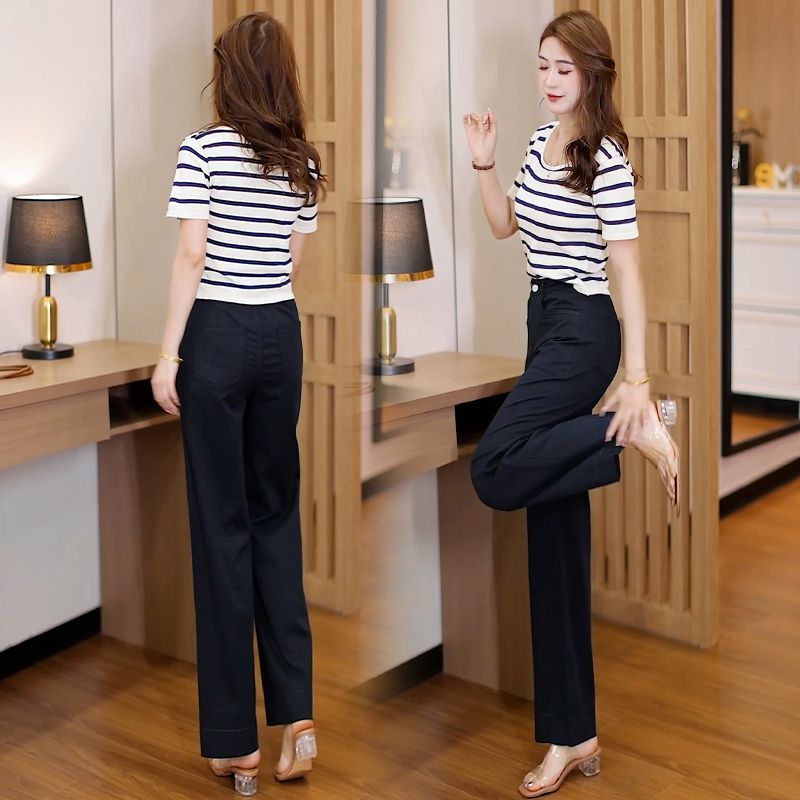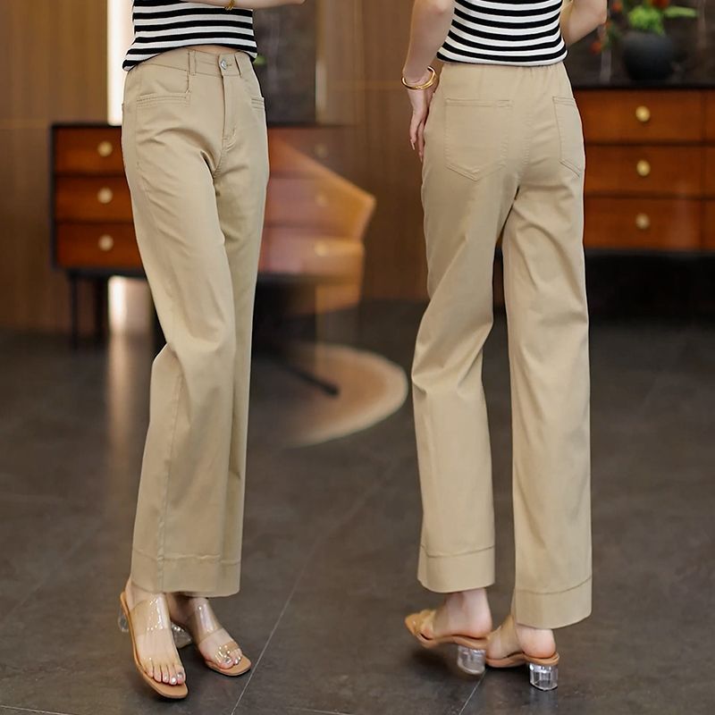 天丝棉窄版直筒裤女夏薄款宽松显瘦2025年新款高腰西装九分阔腿裤