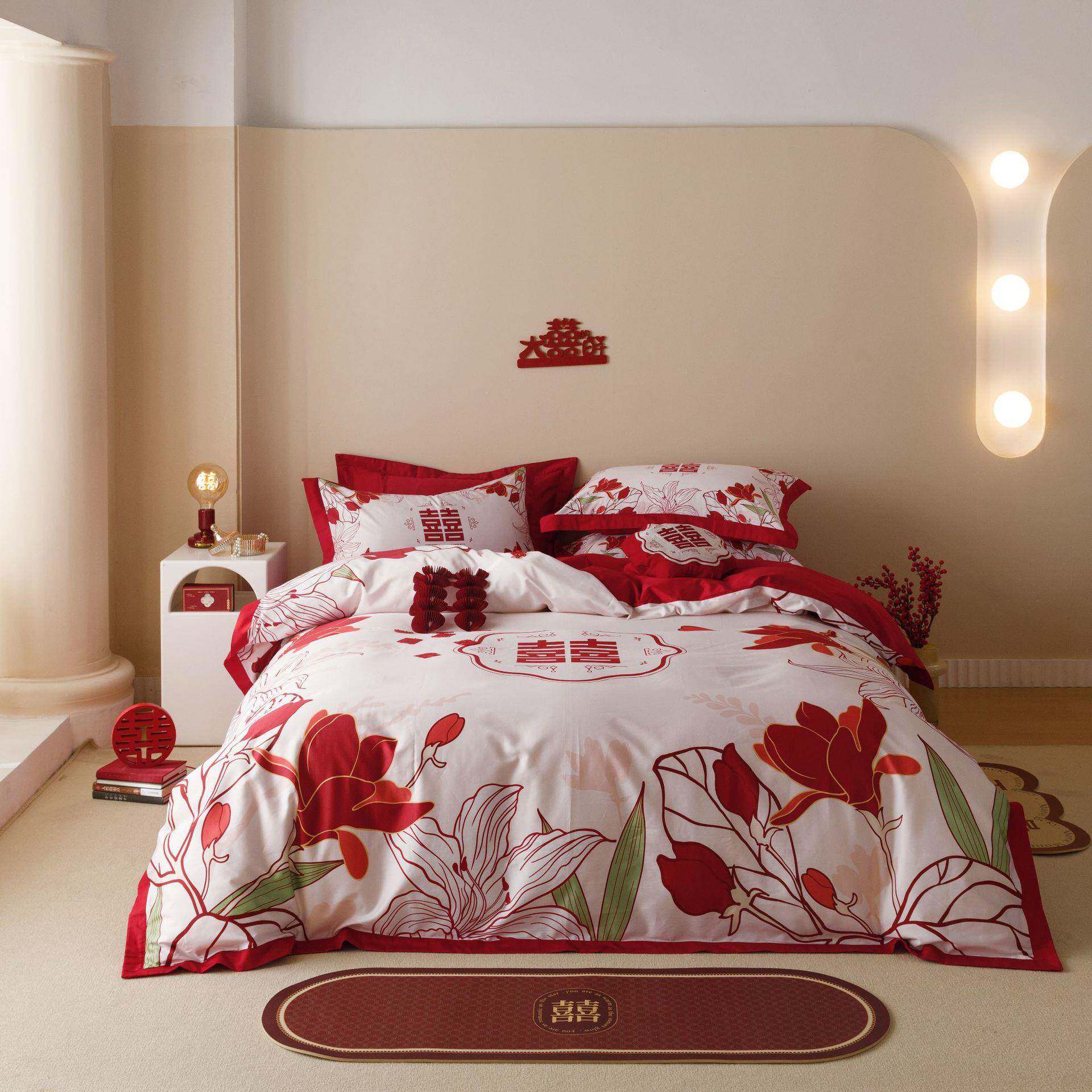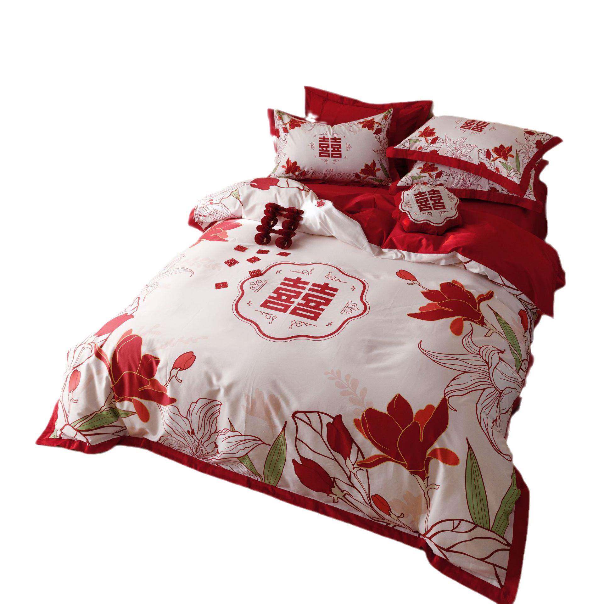 中国风大红色结婚四件套全棉纯棉被套1.8米2米床单双人床上用品