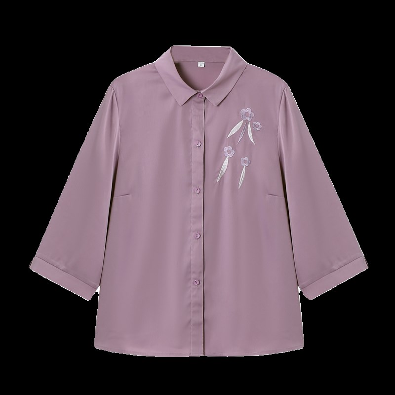 中老年女洋气衬衫妈妈春夏装中袖雪纺小衫时尚薄开衫上衣两件套装