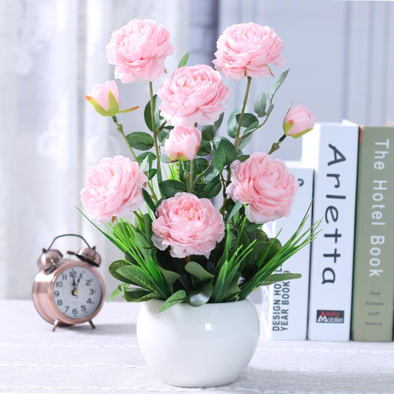 仿真花客厅餐桌玫瑰插花牡丹盆栽假花绢花摆件冰箱干花