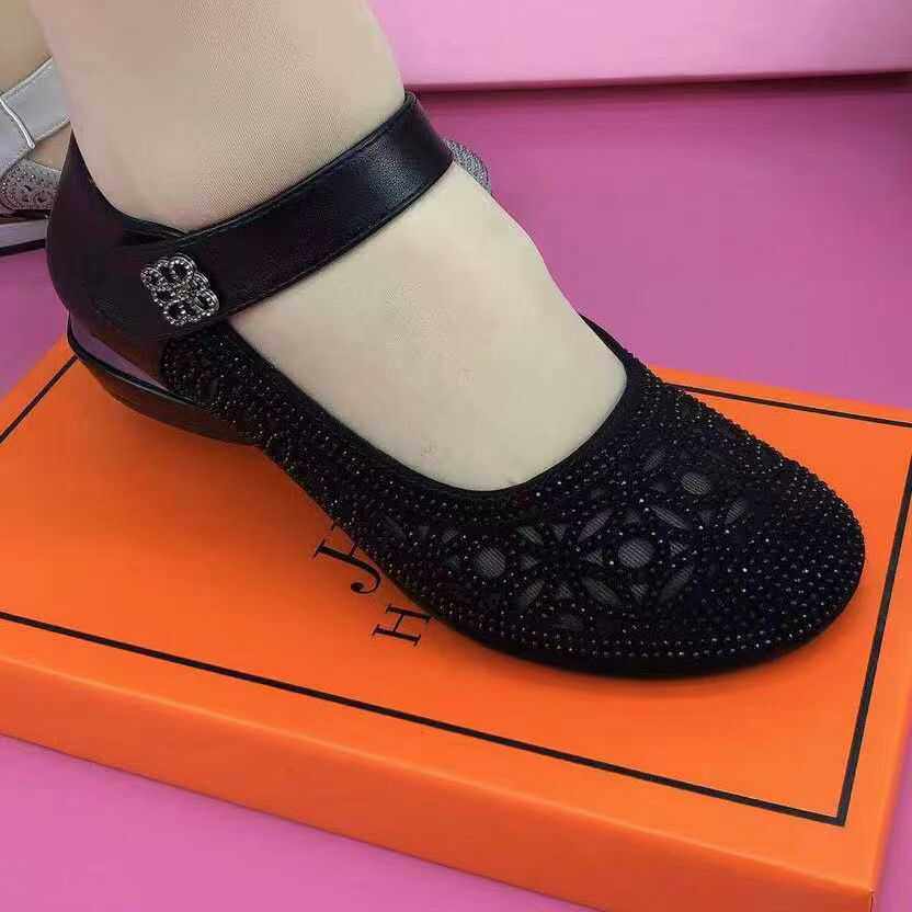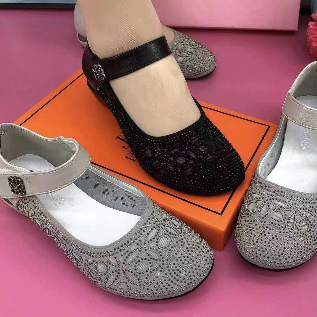 弥尊大东真软皮网纱凉鞋透气单鞋女士软底跳舞洞洞鞋中老年妈妈鞋