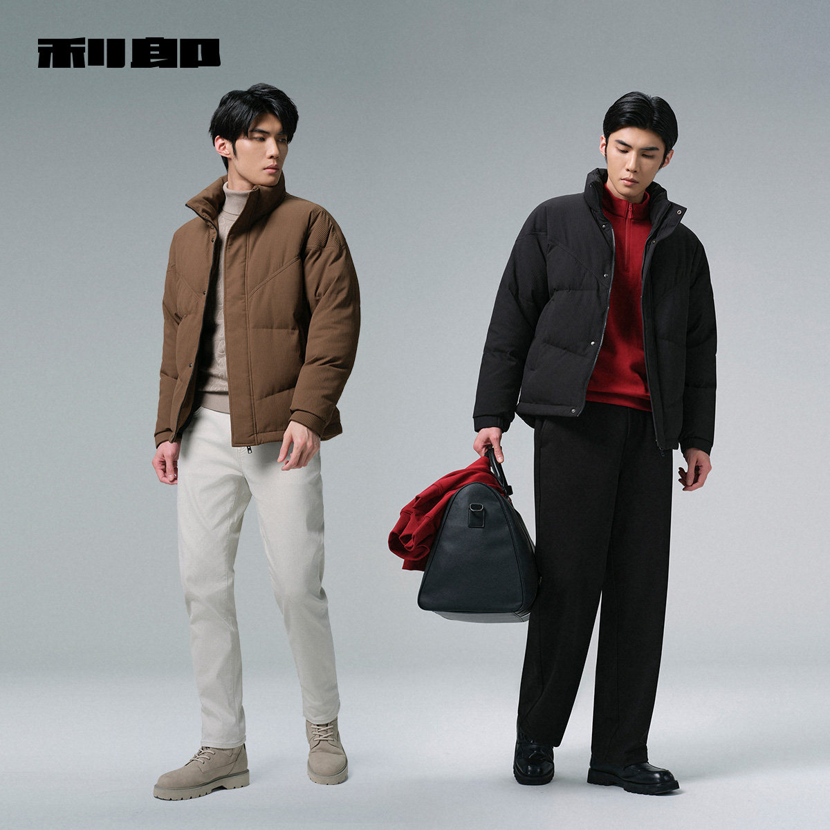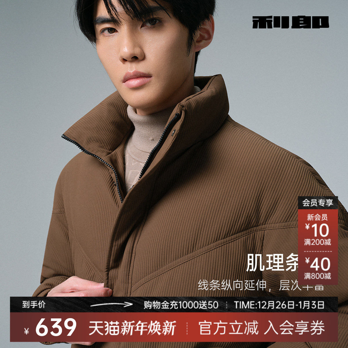 【肌理条纹】利郎官方 羽绒服男士短款立领2025冬季新款保暖外套