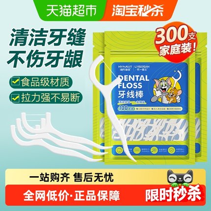 海氏海诺口腔清洁牙线棒牙科洁治器家庭装超细牙线棒100支*3包