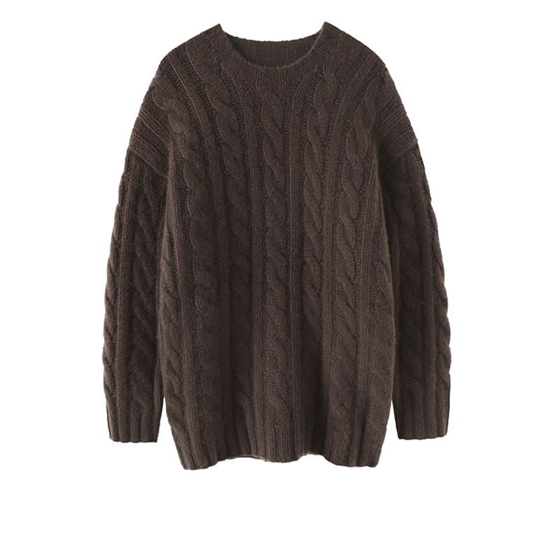 难得爆好看啊!粗棒针重磅加厚羊绒衫女中长款圆领纯羊绒毛衣宽松