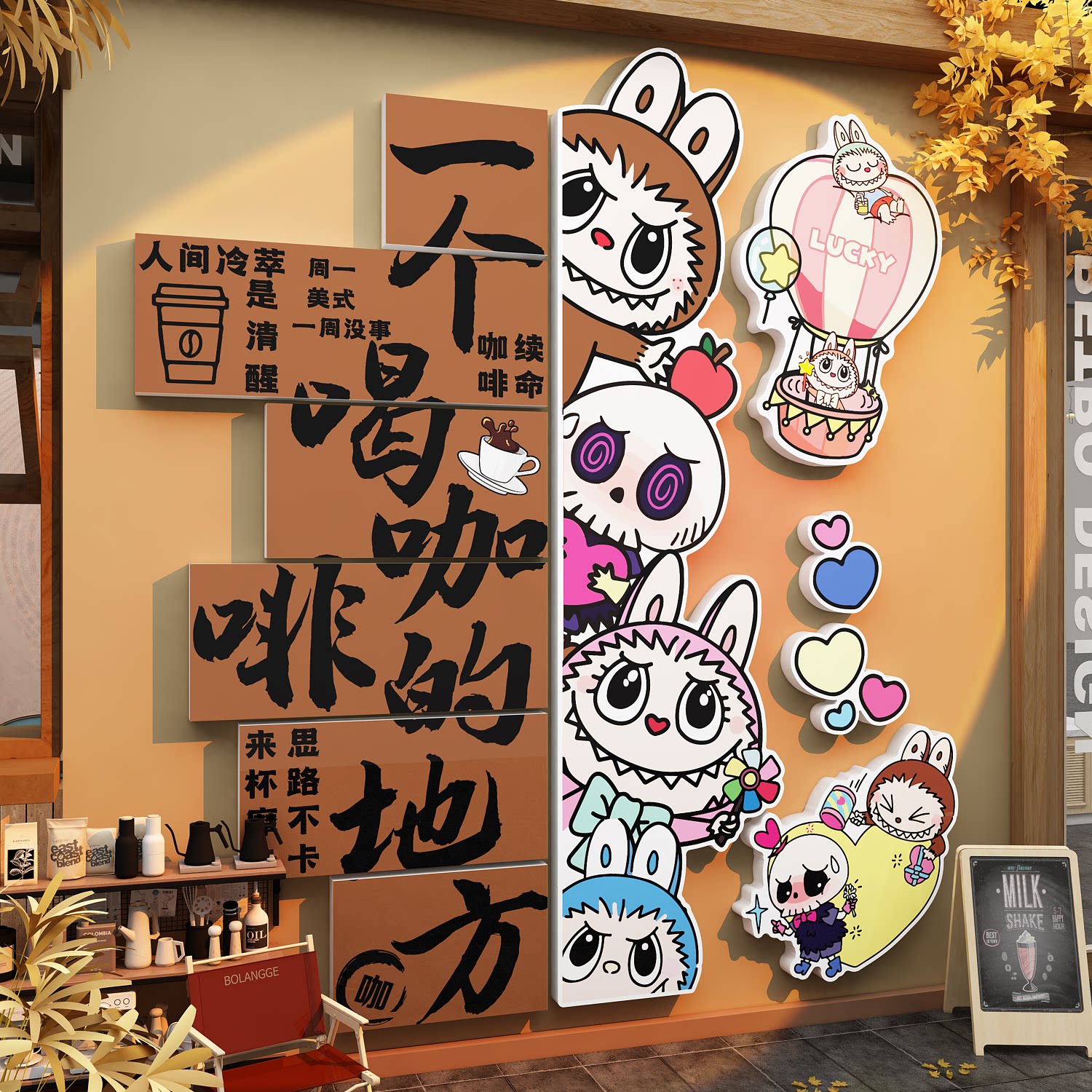抓娃娃机店墙面装饰电玩城网红打卡氛围布置拉布标语海报广告贴纸