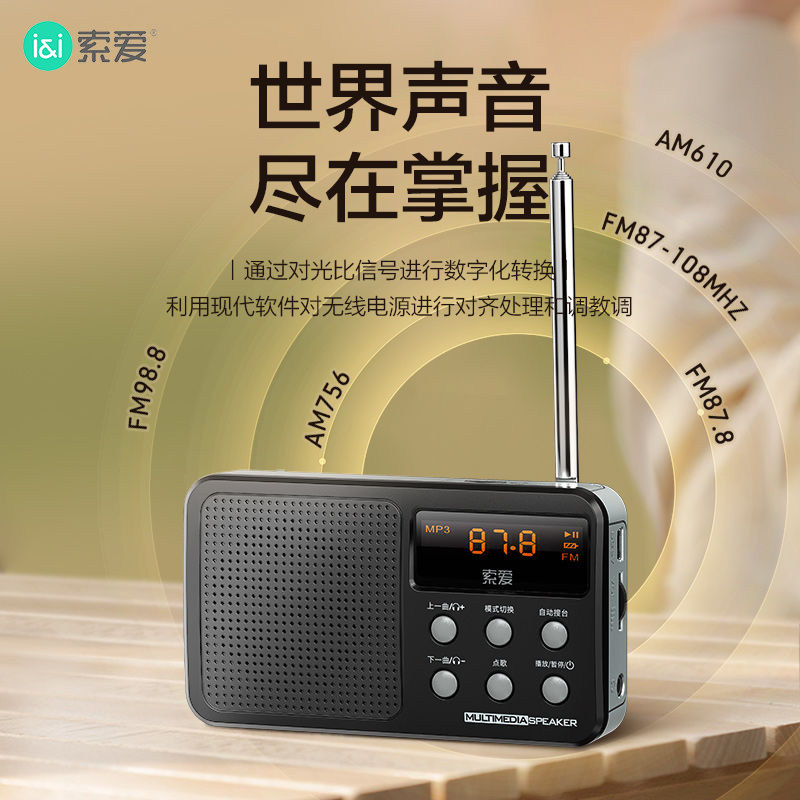 【正品保证】索爱收音机老人用新款全波段卫星四六级听力插卡迷你