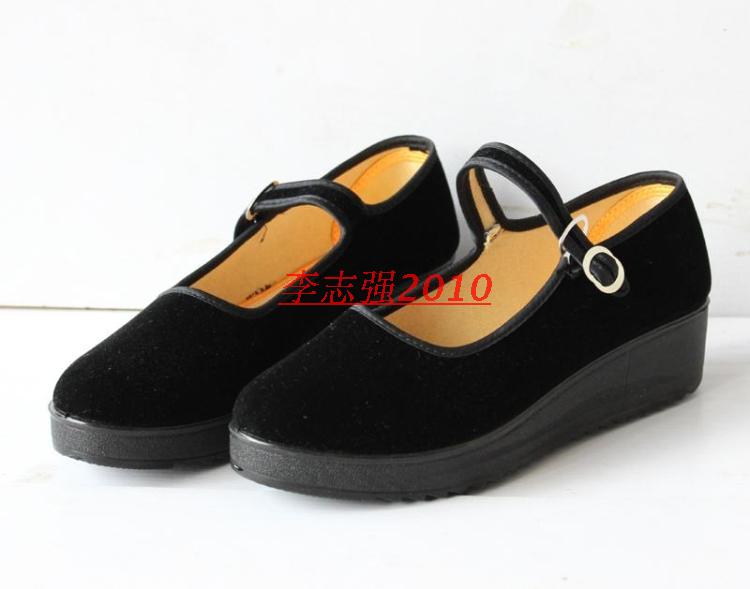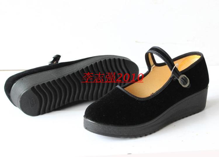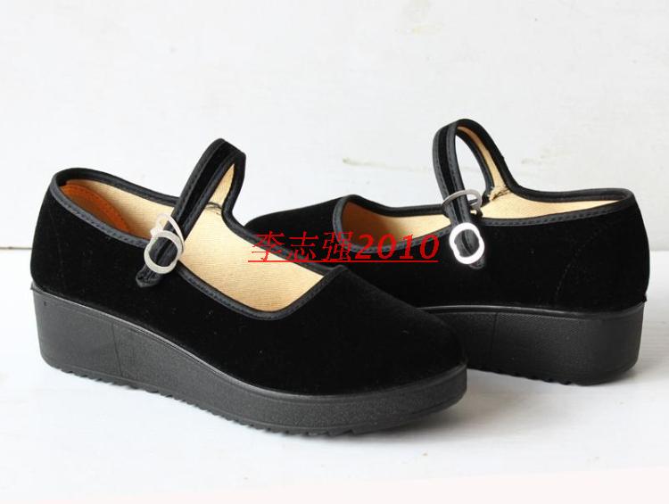 正品老北京布鞋 女鞋松糕底坡跟单鞋厚底防水台工作鞋软底黑布鞋