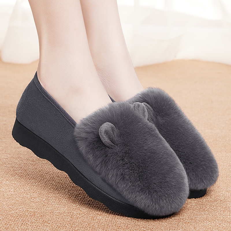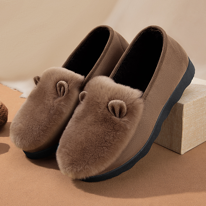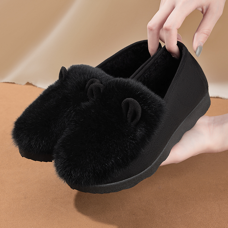 老北京棉鞋女冬加绒加厚一脚蹬保暖毛毛外穿轻便平底妈妈豆豆鞋子