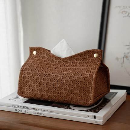 竹编纹质感纸巾盒高档轻奢卫生纸盒餐巾纸盒轻奢家居民宿客厅桌面