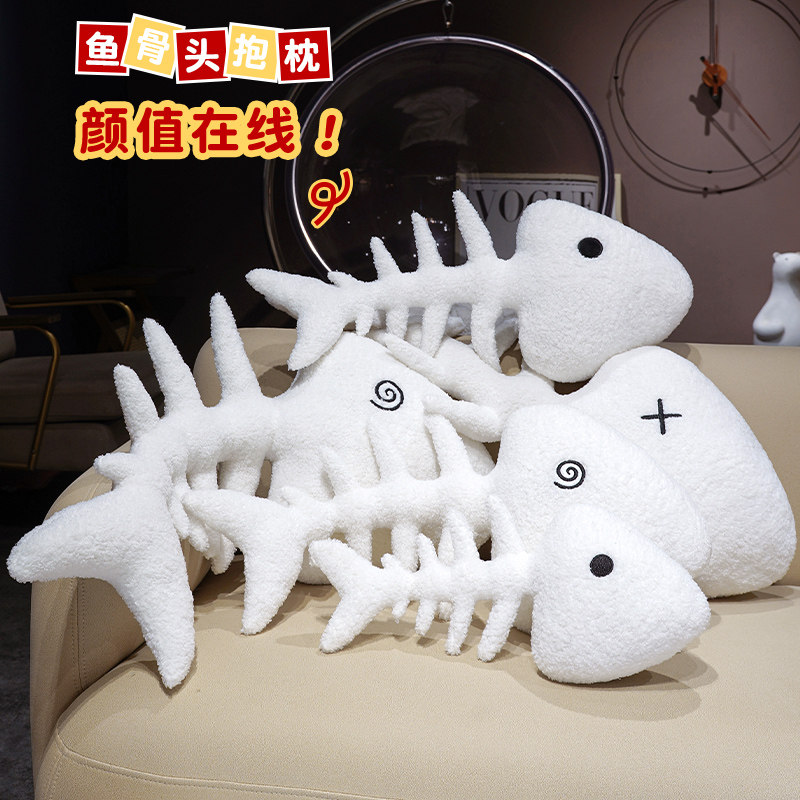 鱼骨头抱枕仿真鱼刺玩偶鱼骨毛绒公仔睡觉枕头夹腿枕儿童玩具女生