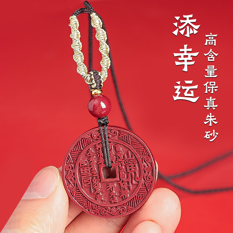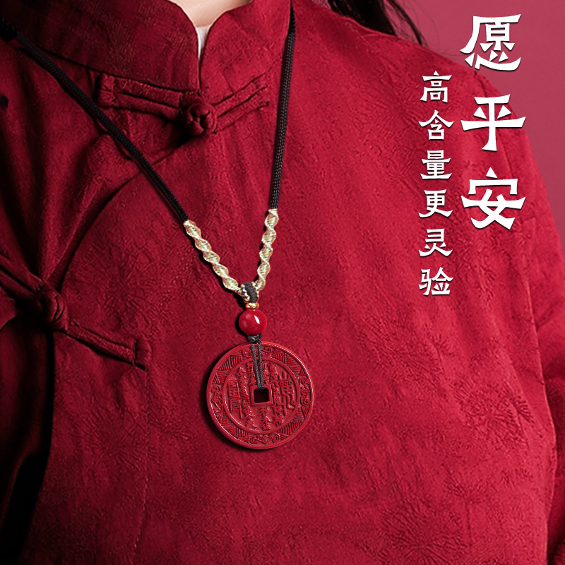 高含量朱砂山鬼花钱吊坠帝王紫金砂八卦令吊牌本命年平安扣挂坠女