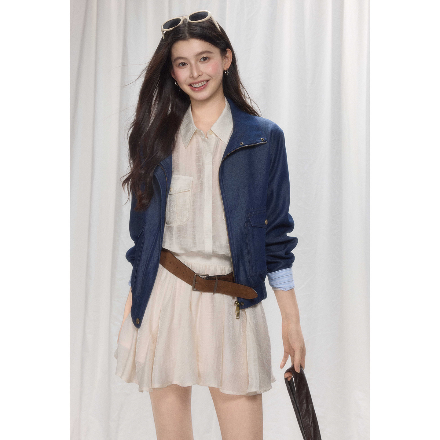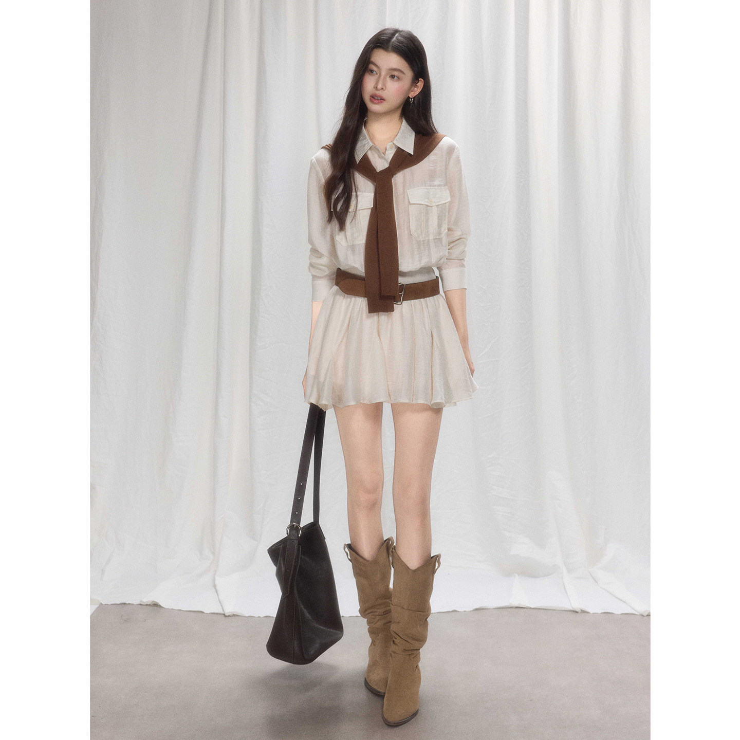 贰羊设计【凝初】立体百褶通勤衬衫连衣裙女早春轻薄透气收腰短裙