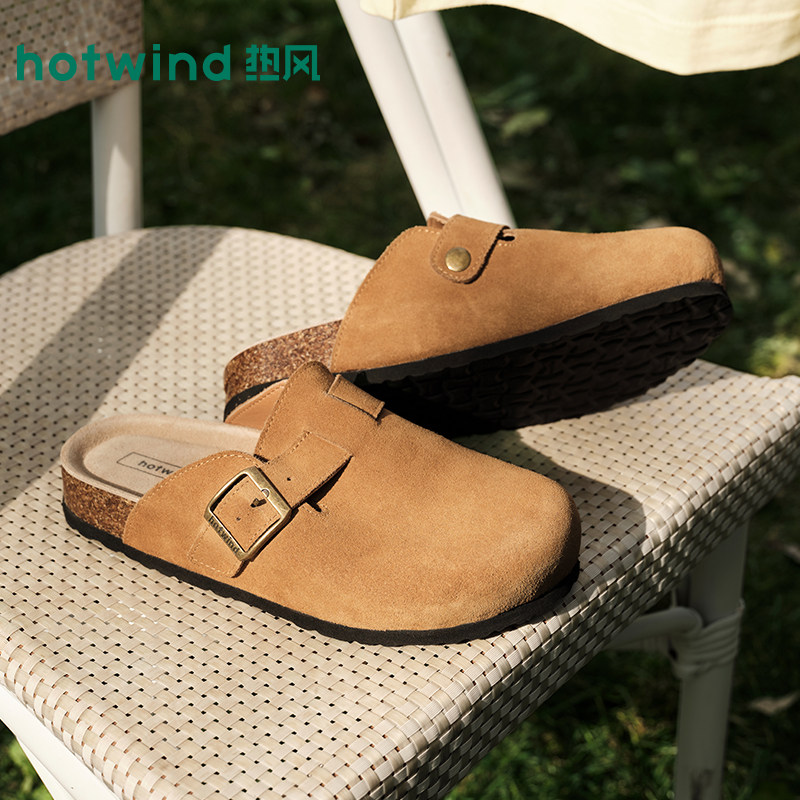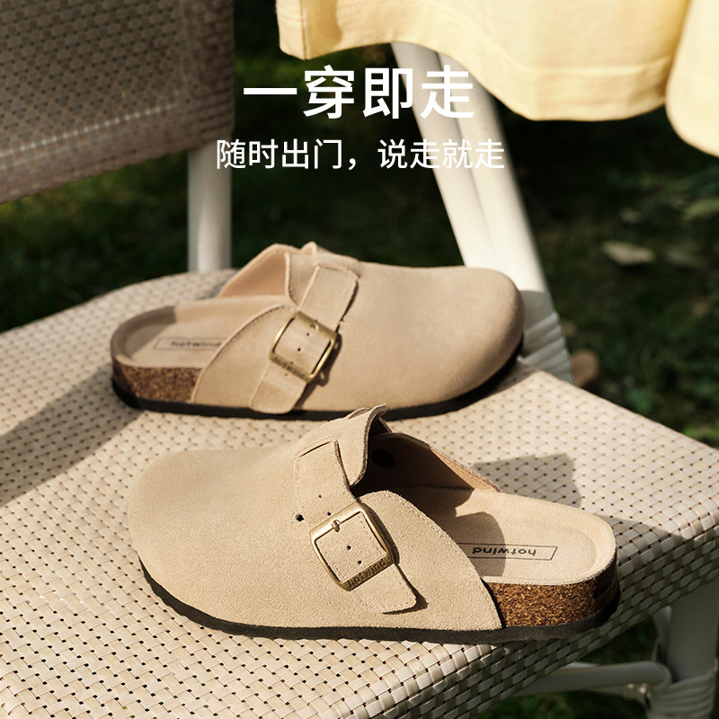 热风复古勃肯鞋女2026年春季新款杏色百搭包头拖半拖外穿拖鞋女鞋