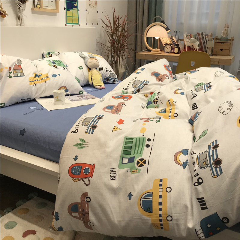 北欧ins男孩卡通小汽车床上四件套全棉纯棉被套1.5m1.8被套三件套