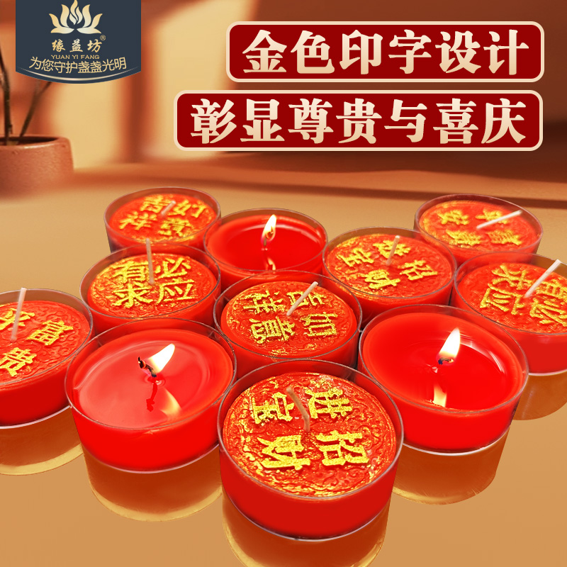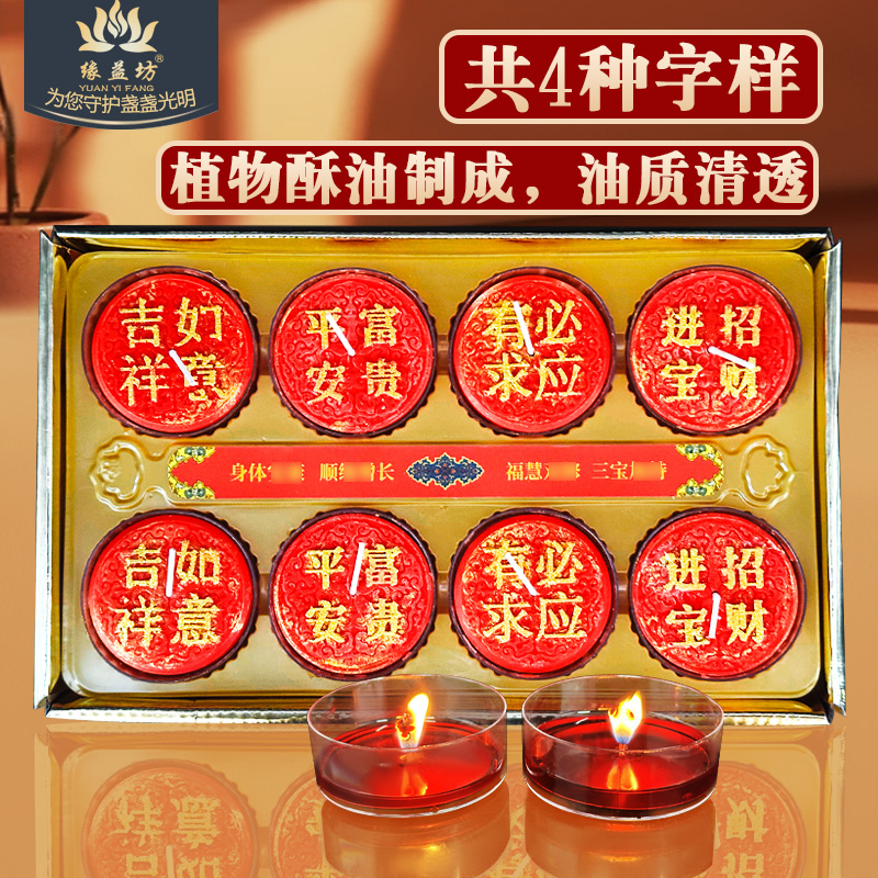 印字八吉祥招财进宝富贵平安12小时胶壳酥油灯家用供佛灯无烟蜡烛