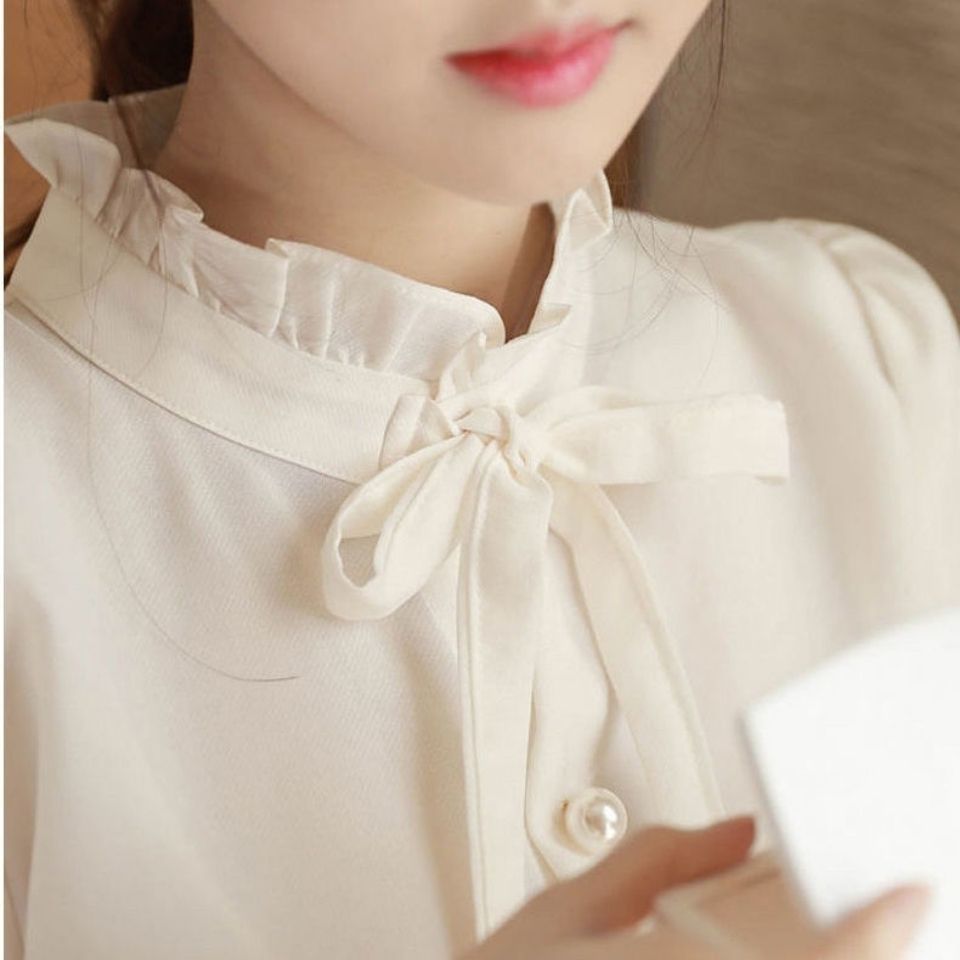 荷叶边立领雪纺衬衫女长袖上衣系带春秋季2025新款洋气质打底百搭