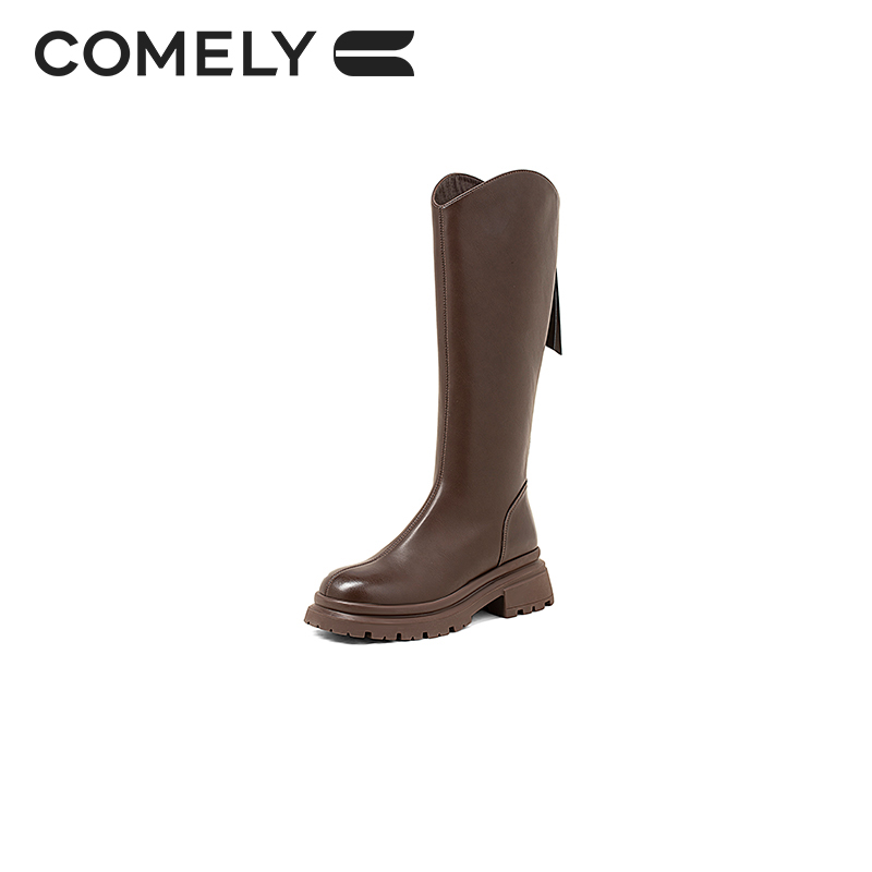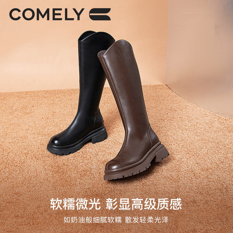 康莉骑士靴女厚底冬季新款后拉链高筒不过膝圆头粗跟长靴子