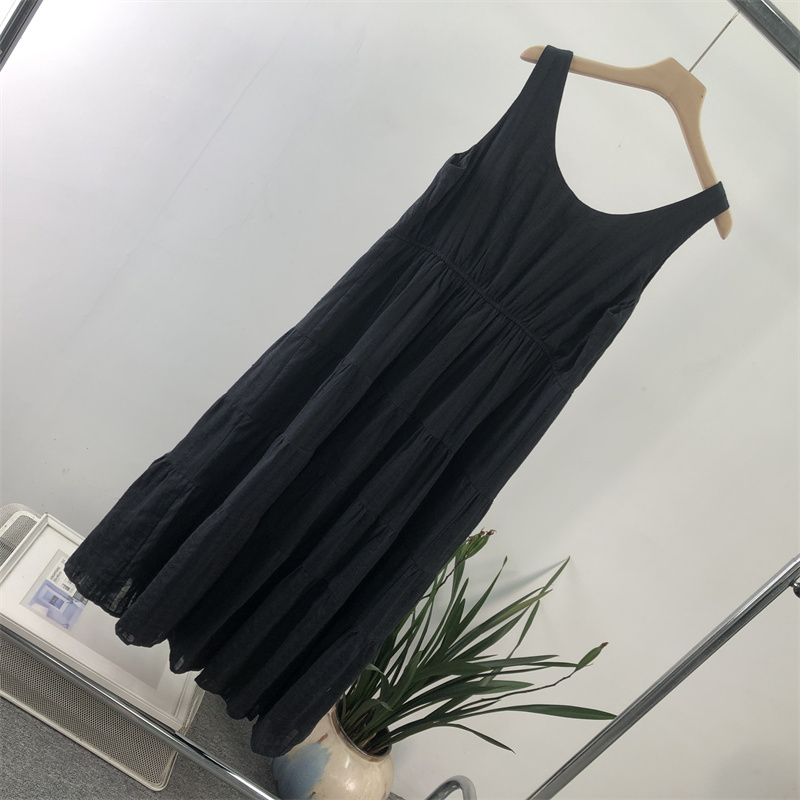 外贸捡漏余单 夏季人棉 印提绣花纹简约百搭背心休闲大码连衣裙