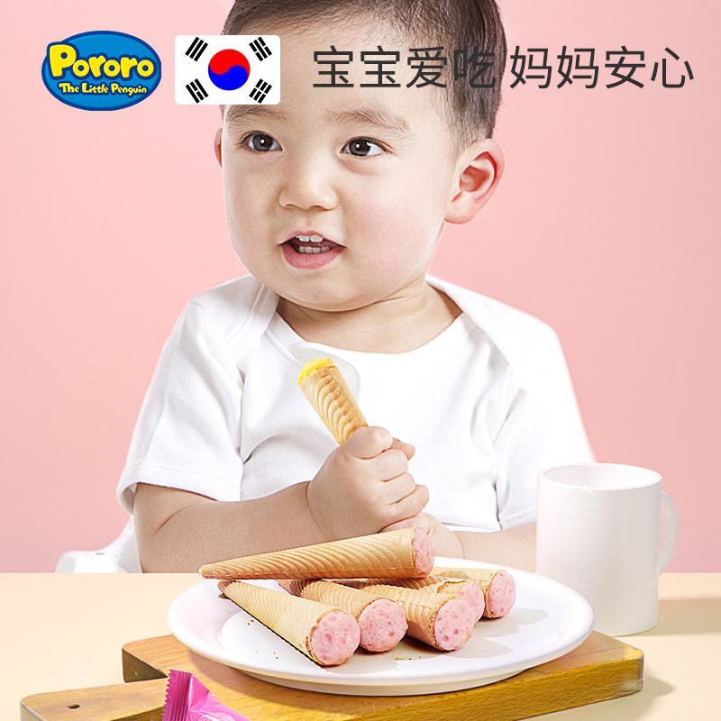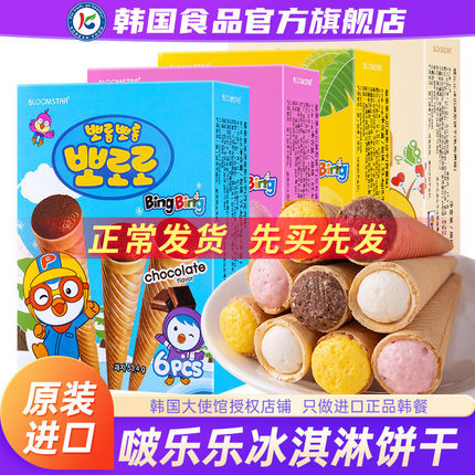 韩国进口啵乐乐冰淇淋形饼干夹心蛋卷巧克力曲奇儿童零食脆筒威化
