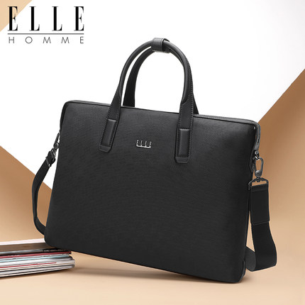 ELLE HOMME男士手提包横款商务休闲公文包新款单肩斜挎包品牌男包
