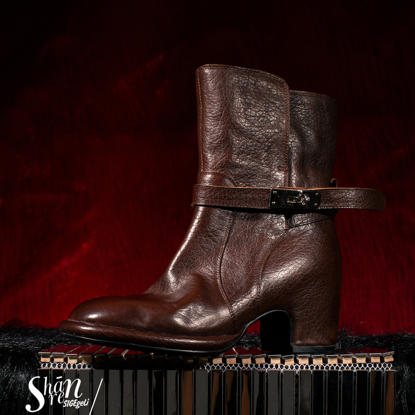ShānRen重工水洗 高级感 粗跟防水台宽筒短靴子女时尚高跟时装靴