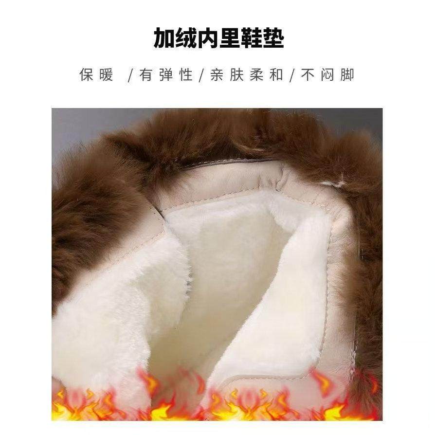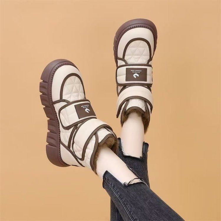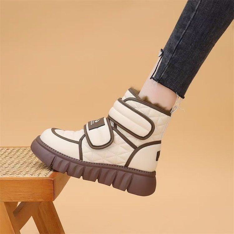 休闲风厚底短靴女冬季加绒保暖防滑时装靴黑色短筒魔术贴橡胶底靴