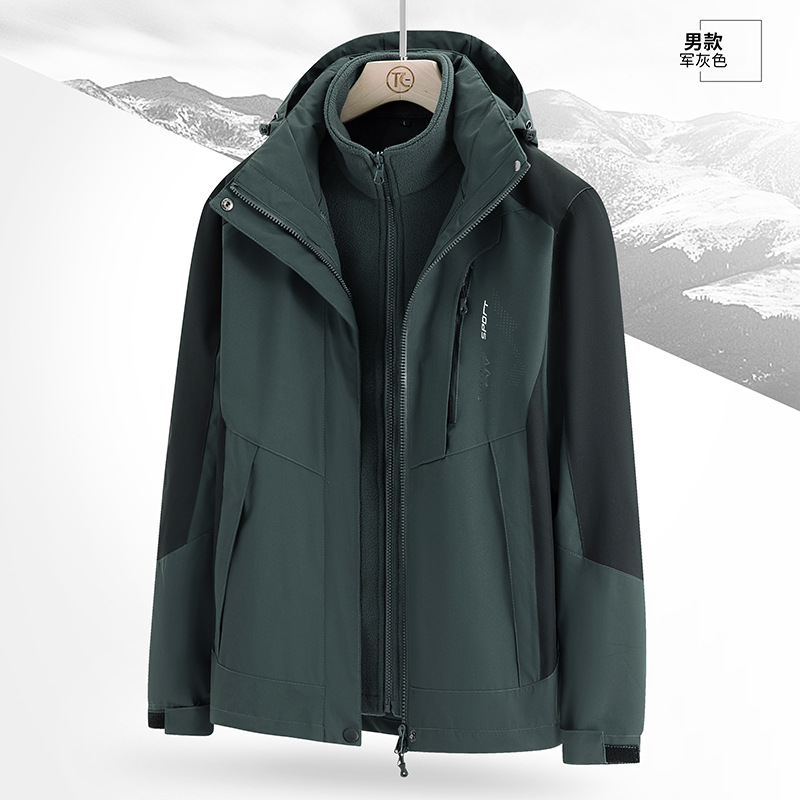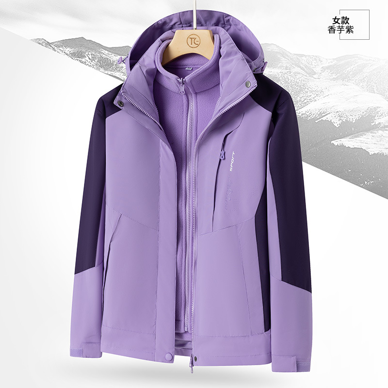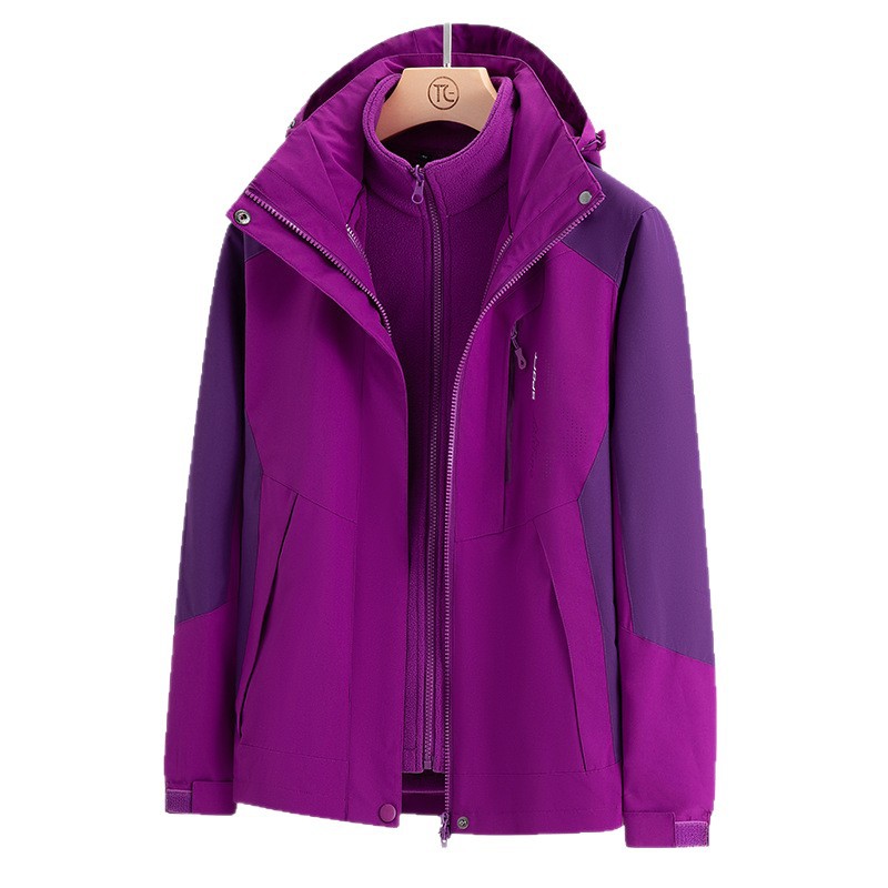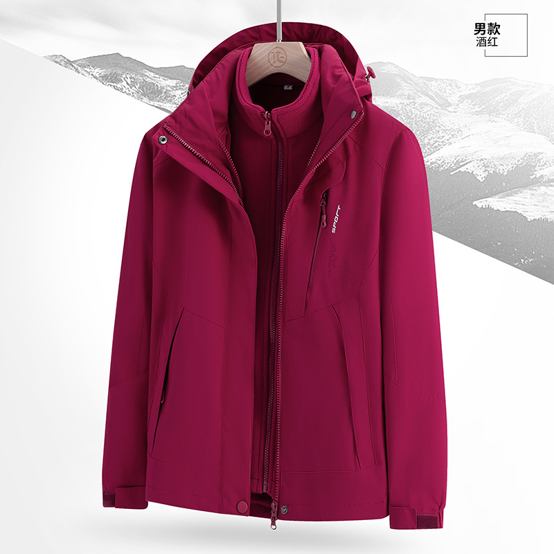 运动户外冬季玫红色团体工作服定制冲锋衣男加厚两件套女外套
