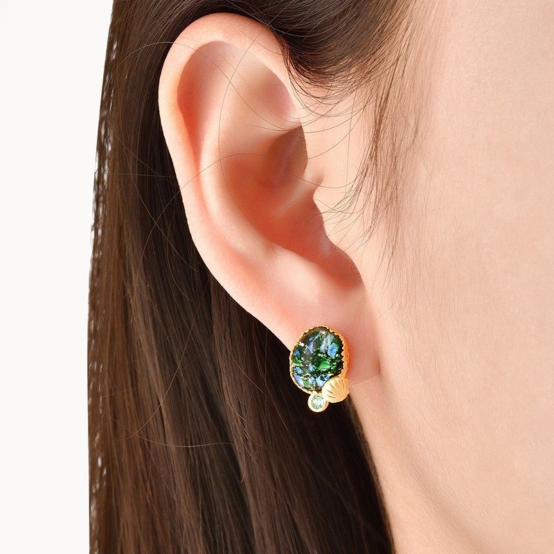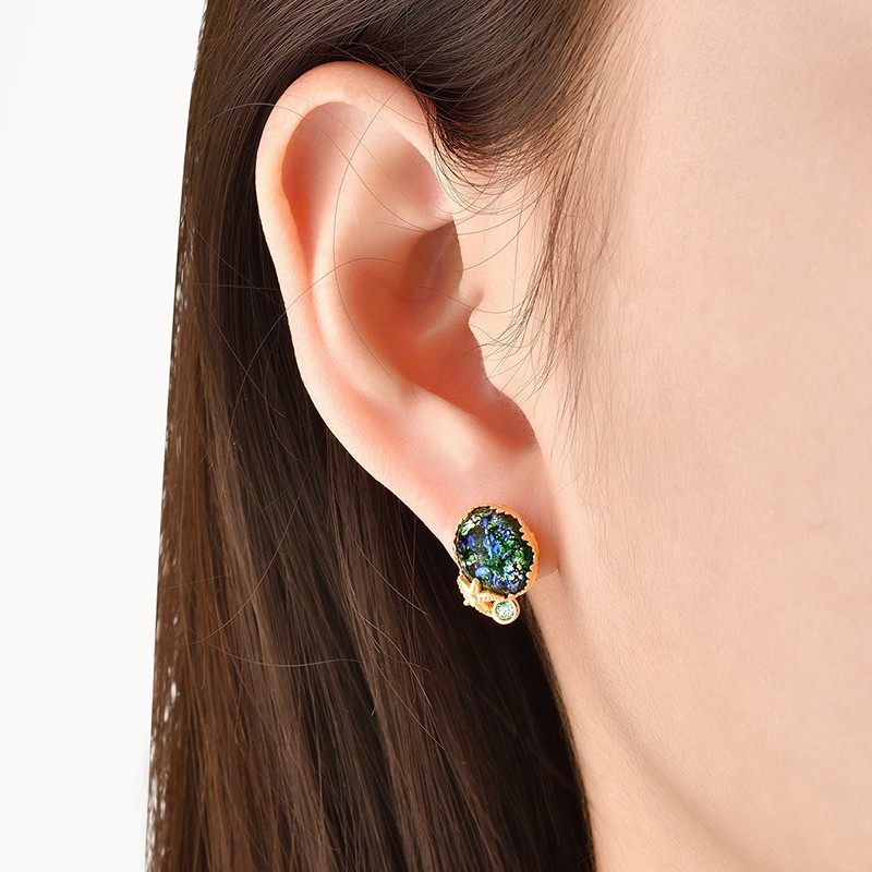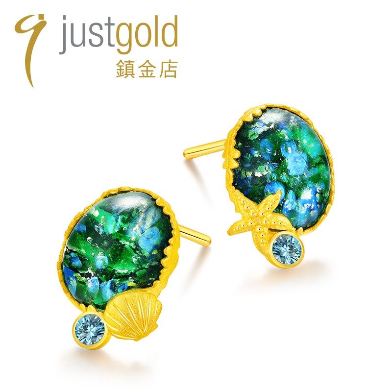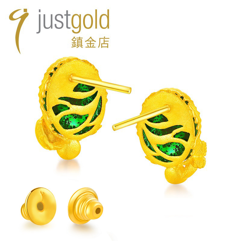 justgold镇金店美人鱼足金黄金耳钉(含耳堵)1327361Y