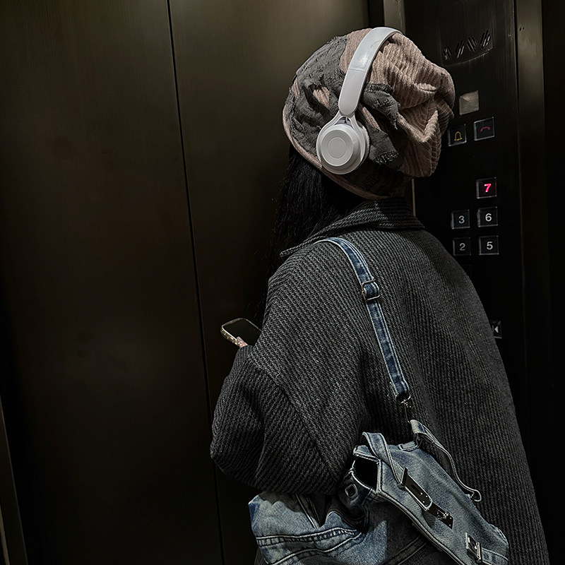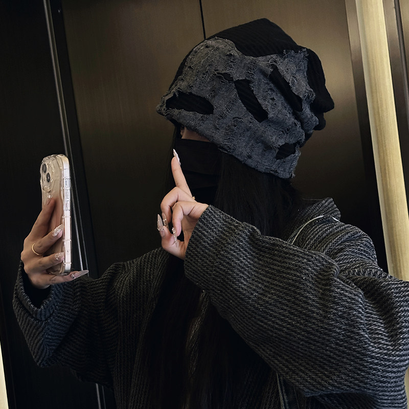 废土风破洞设计感堆堆帽男女同款秋冬季慵懒风百搭护耳包头帽冷帽