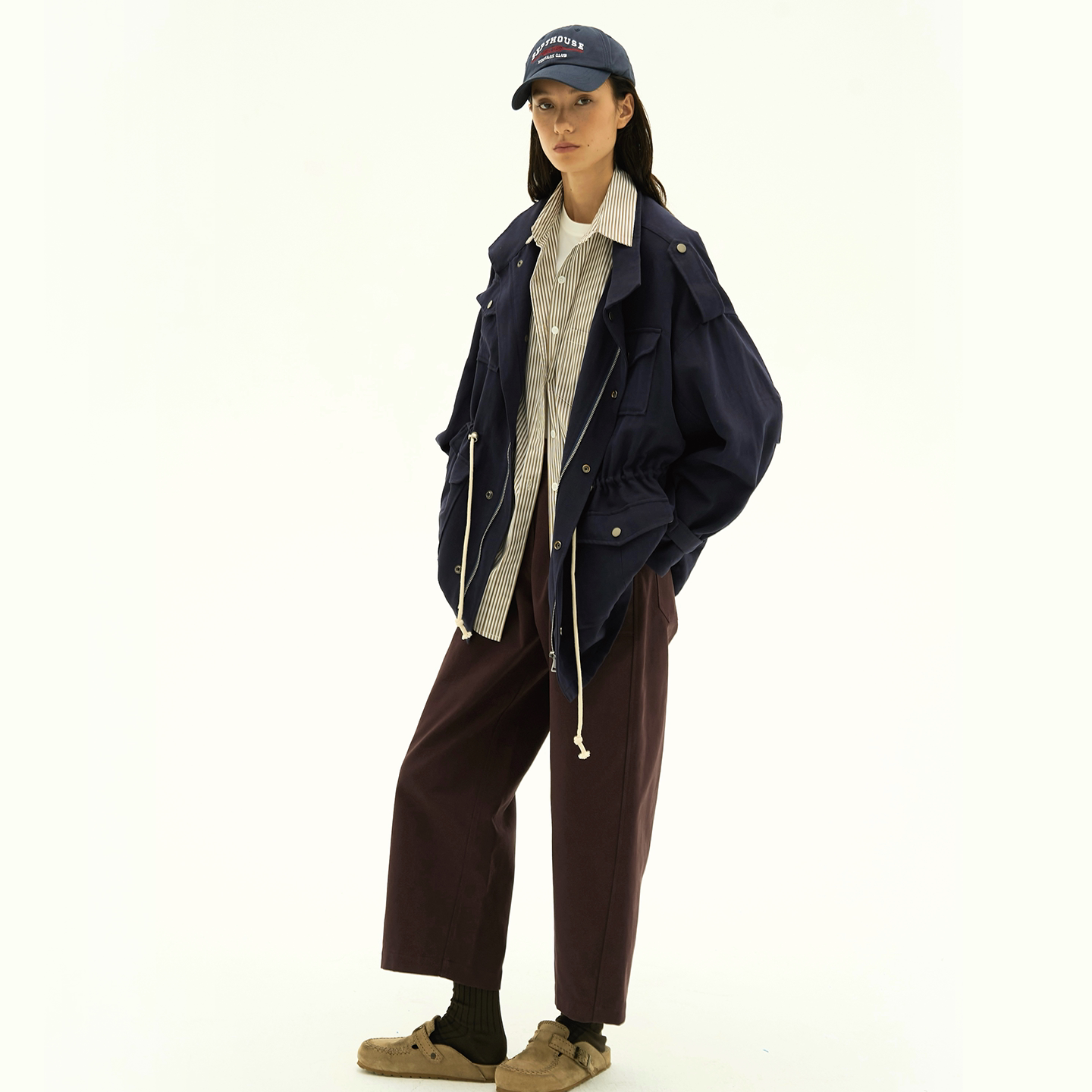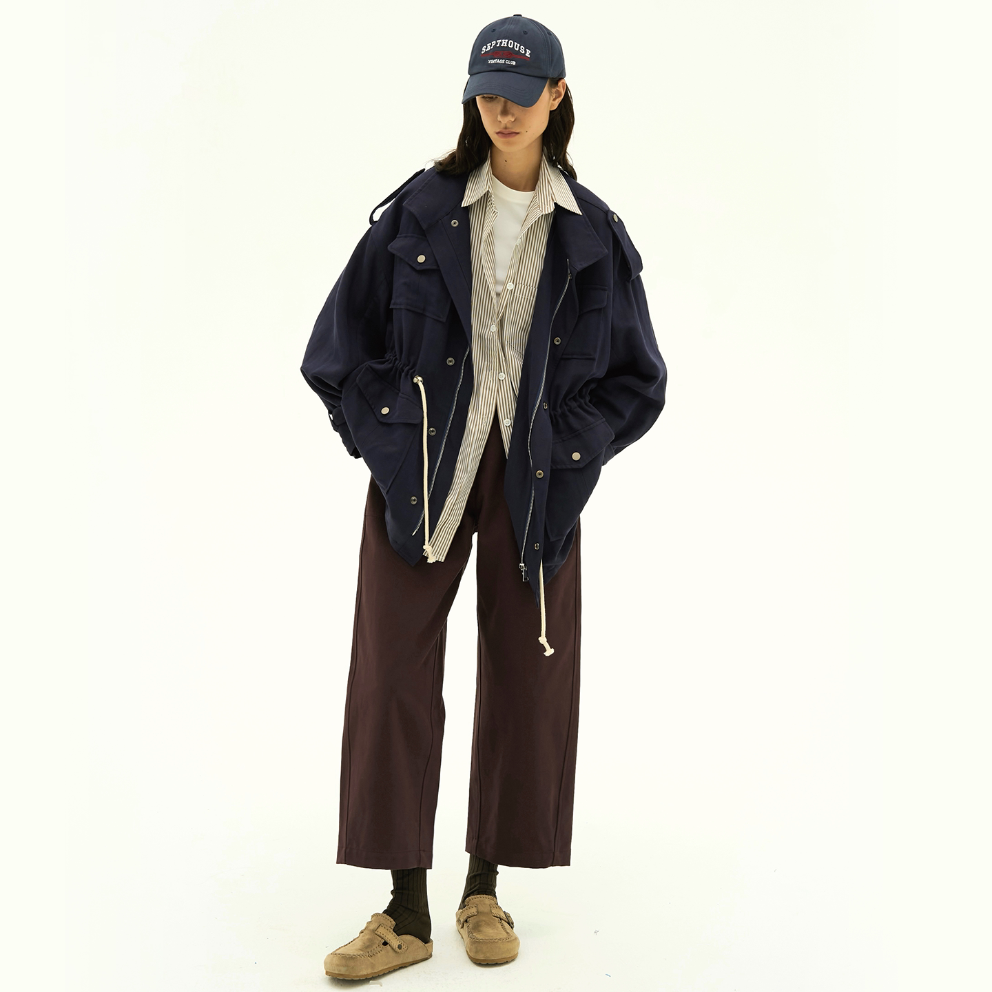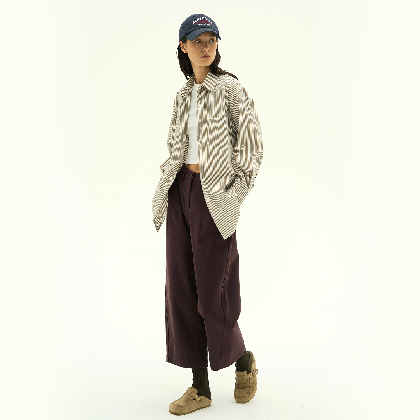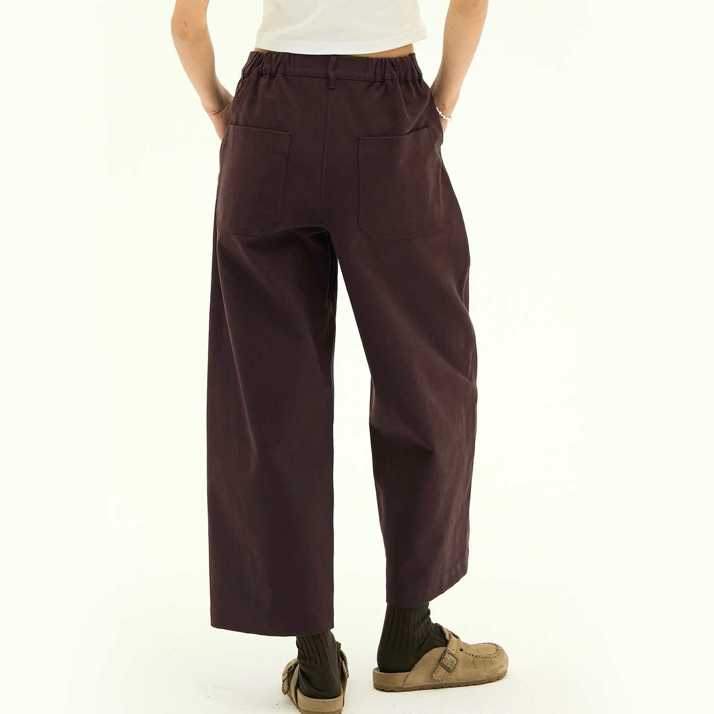 Septhouse 新款百搭深紫色休闲工装9分裤 简约直筒松紧腰中长裤女