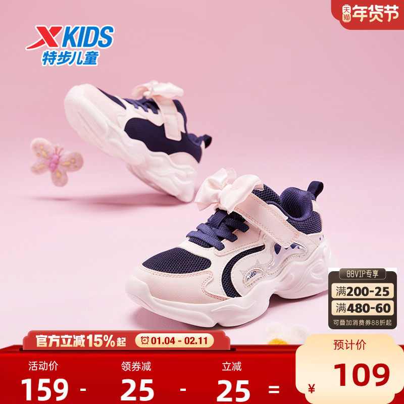 特步童鞋秋冬新款儿童运动鞋女童防滑鞋子幼小童魔术贴萌趣休闲鞋