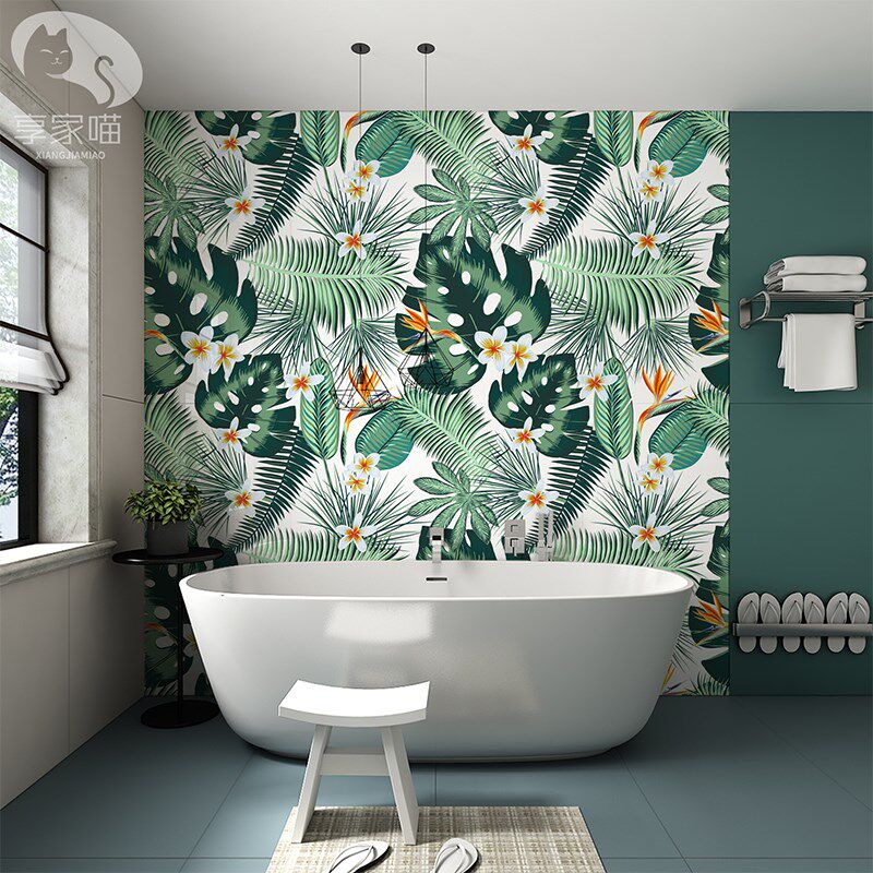 热带植物花砖g卫生间瓷砖图案浴室艺术墙砖厕所洗手间背景墙芭蕉