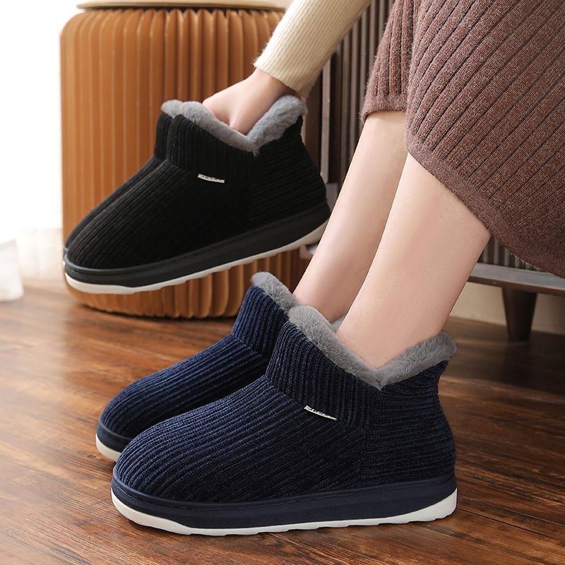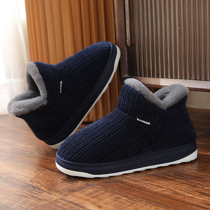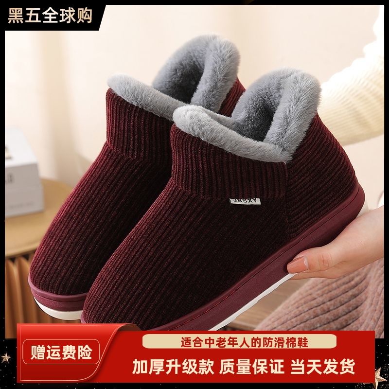 冬季新款女防滑软底老人棉鞋加绒加厚保暖包脚跟厚底居家棉拖鞋男