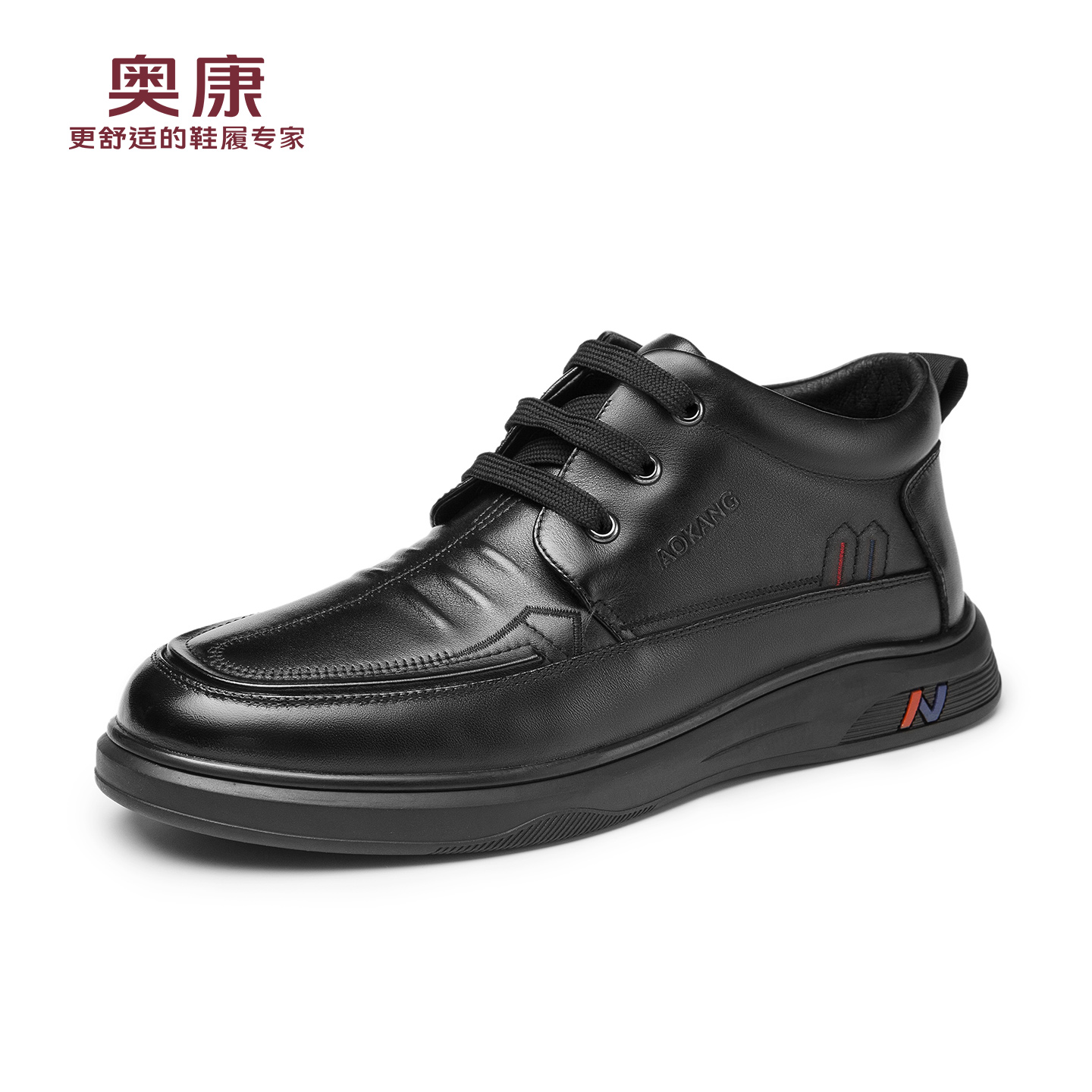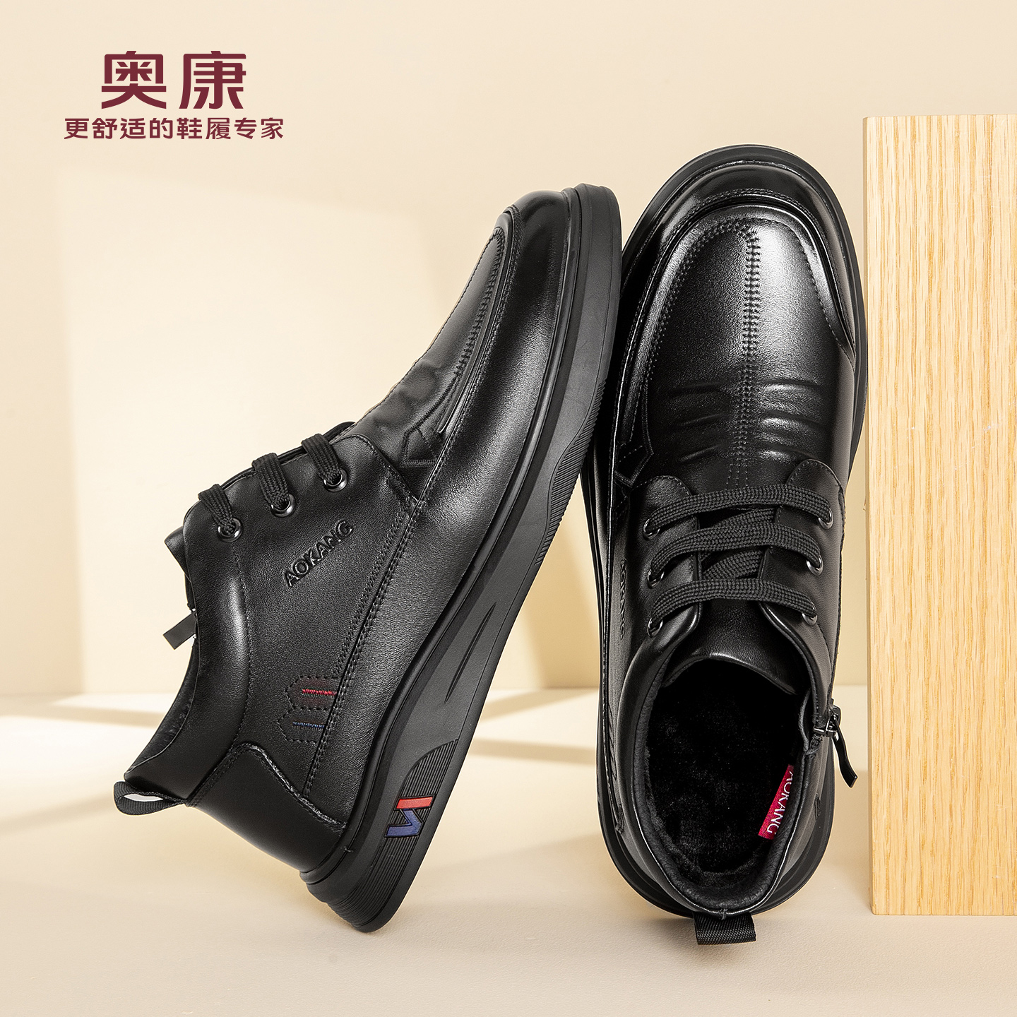 奥康 男鞋高帮鞋2025冬季新款真皮保暖中老年棉鞋休闲皮鞋男N