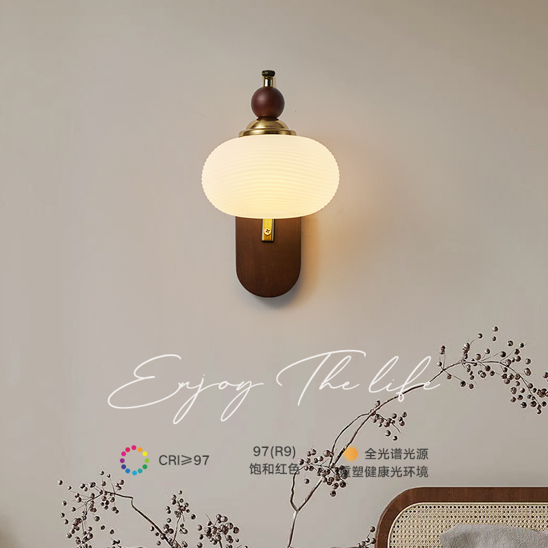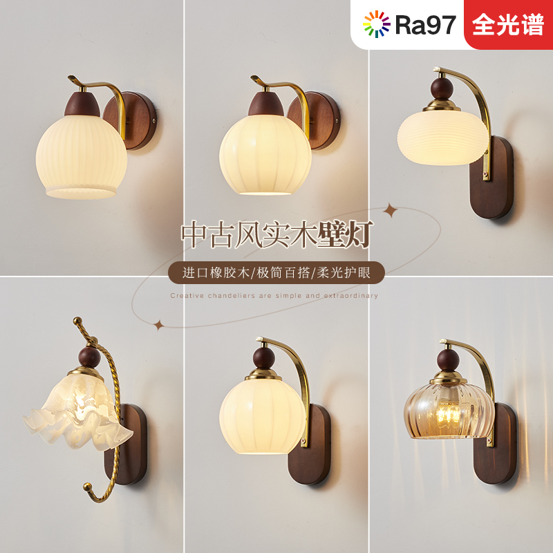 中古风卧室床头灯壁灯护眼新中式复古过道玄关阳台简约实木全光谱