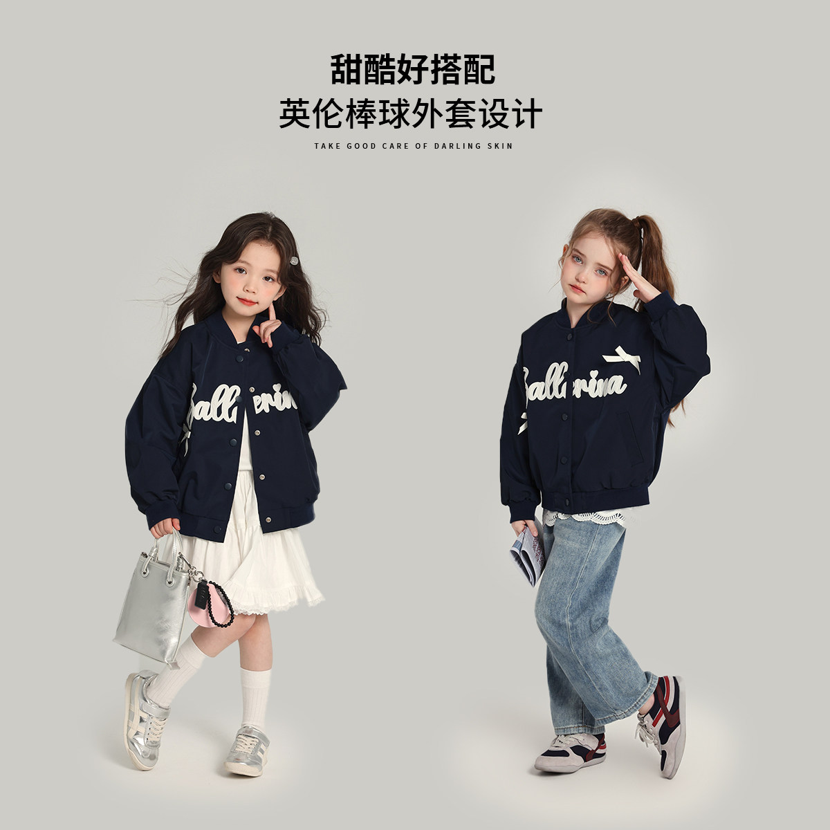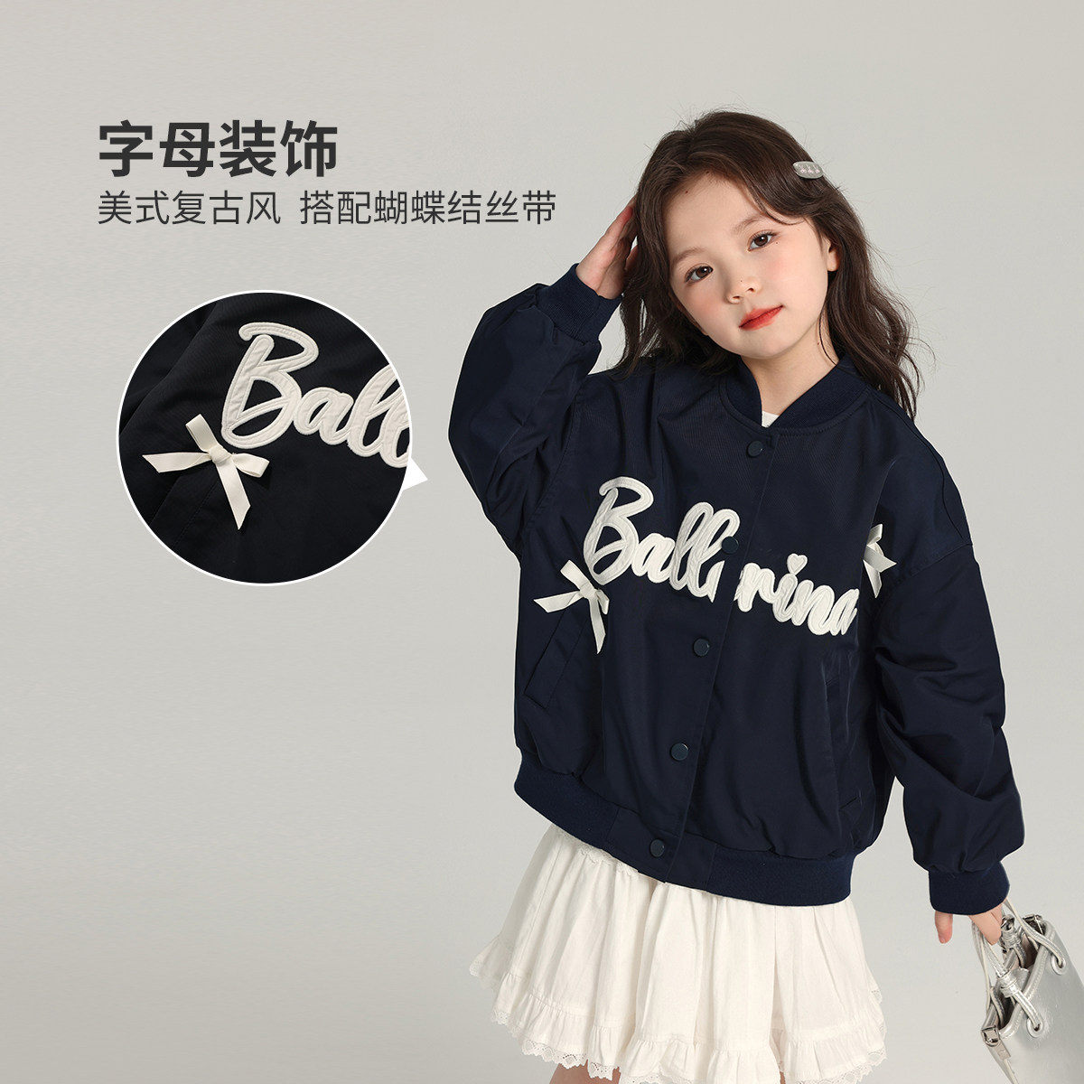 布丁哈鲁童装秋装女童洋气上衣2026春秋新款儿童棒球服休闲外套