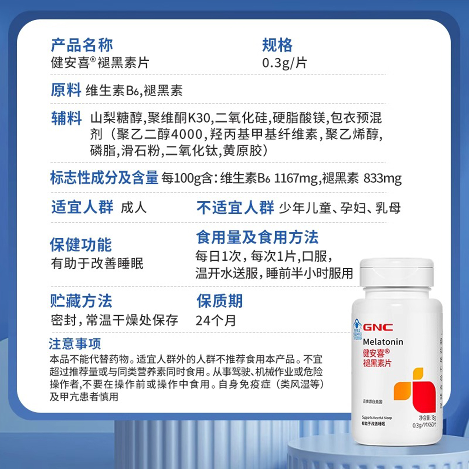GNC健安喜褪黑素片60粒维生素b6黑色素成人安瓶