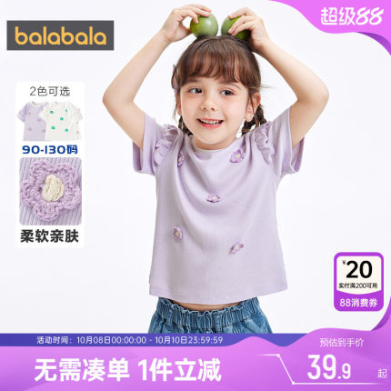 巴拉巴拉女童短袖T恤小童宝宝上衣夏季新款童装儿童洋气打底衫孩