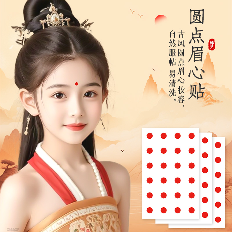 儿童红色圆点眉心贴幼儿园节日额头 可爱贴纸男女防水持久纹身贴