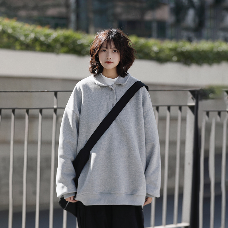 阿于呆简约420g重磅Polo衫男秋冬宽松百搭纯色休闲翻领套头上衣女