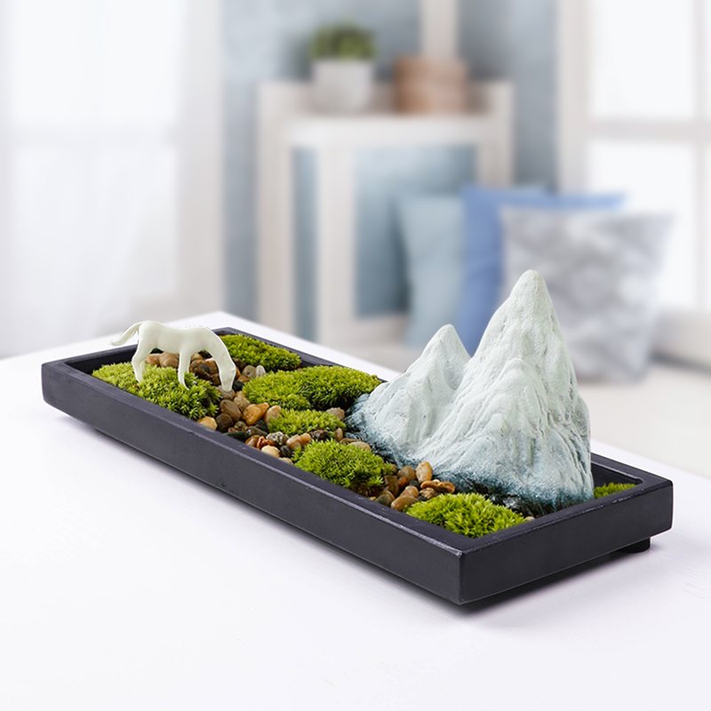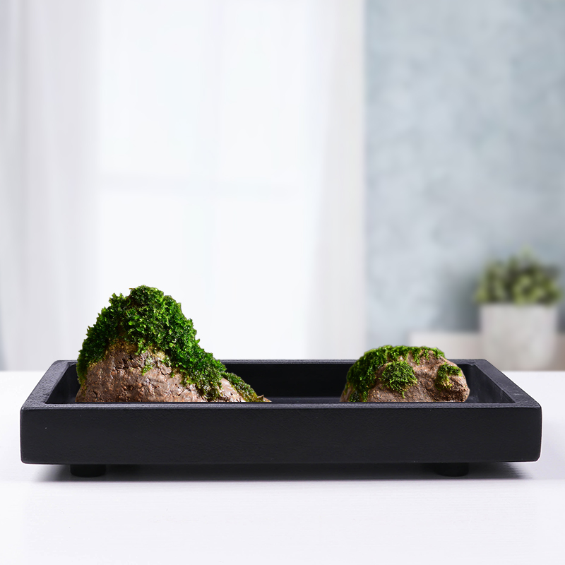 乌金石大型微景观室内造景盆无孔苔藓假山吸水石树桩盆景盆长方形
